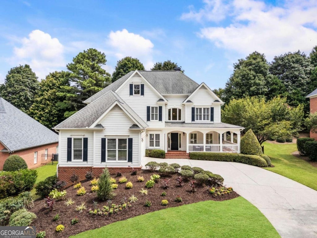 Nestled on a quiet cul-de-sac in Alpharetta's coveted Nesbit Lakes swim/tennis community, this 6-bedroom, 5-bath residence offers 5,300+ sq. ft. of meticulously maintained living space. Built, cared for, and updated by the original owners, it features timeless craftsmanship, high-end finishes, and extraordinary attention to detail-truly one of a kind in its price range. The main level boasts a rare open floor plan with soaring ceilings, hardwood floors, and abundant natural light. The updated gourmet kitchen with casual dining flows into a sunlit keeping room with a custom stack-stone fireplace, as well as the spectacular 2-story great room with floor-to-ceiling windows and a marble fireplace. Together, these spaces open to a beautiful outdoor living area overlooking a private, fenced backyard with mature hardwoods and lush landscaping. Additional main-level highlights include a guest suite, full bath, sitting room, dining room, and laundry with sink. Upstairs, the primary suite with sitting area features a jacuzzi tub, separate shower, dual vanities, and a large walk-in closet. An en-suite bedroom, two secondary bedrooms, and a guest bath complete this level. The finished terrace level offers a bedroom, full bath, media room with built-ins, second kitchen with French doors to the yard, pool table room, office, exercise room, a playroom, and ample storage. Ideally located near top-rated schools, Newtown Park, Avalon, Historic Roswell, Downtown Alpharetta, and GA-400, this move-in-ready home is prepared to welcome its next owners.