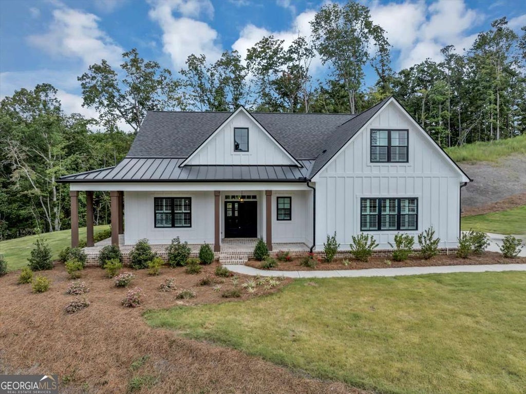 Welcome to 388 Oxford Road-an exquisite Ball Ground estate designed to impress at every turn. This residence exudes refined luxury with soaring ceilings, expansive living spaces, and seamless flow built for both grand entertaining and everyday elegance. The chef's kitchen stands as the centerpiece, featuring professional-grade appliances, custom cabinetry, and a statement island that anchors the open-concept design. Retreat to the owner's suite, a private sanctuary with spa-inspired amenities and boutique-style closet. Secondary bedrooms offer generous scale and designer finishes, ensuring comfort with sophistication. Outdoors, expansive grounds set the stage for elevated living-perfect for al fresco dining, future resort-style amenities, or simply enjoying the serene surroundings. Positioned in one of Ball Ground's most coveted enclaves, this showcase property offers unmatched style, privacy, and presence.