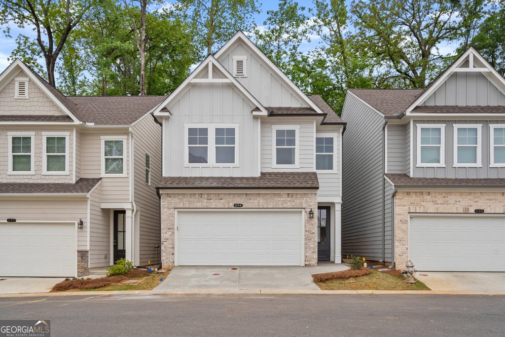 Welcome to The "Stately" Cary A lot 39, a stunning 3-bedroom, 2.5-bath residence in the sought-after GATED Village at Shallowford just steps from pool and clubhouse. This move-in-ready home spans 2,008 sq ft, combining elegance with practicality. The open layout invites you into a bright foyer leading to a gourmet kitchen with 10 FT island, 42" cabinets, gleaming granite countertops, and top-of-the-line stainless-steel appliances. Relax in the cozy living room, complete with a charming shiplap fireplace and 9 FT ceilings throughout the main level, or entertain guests in the adjoining dining room with easy access to the private patio. Retreat to the oversized primary suite, offering a luxurious extended tile shower and a walk-in closet, providing a peaceful escape from the secondary bedrooms. Enjoy the open railing staircase that adds a feeling of light and spaciousness and oak treads on the stairs enhance the sophisticated ambiance. Set within the ONLY gated community with a pool and clubhouse in Kennesaw, enjoy quality amenities and proximity to excellent schools. With its charming exteriors and open floor plans, this home is a true gem. A great investment property! Ask about our rate buy down promotions. Self guided tours available!