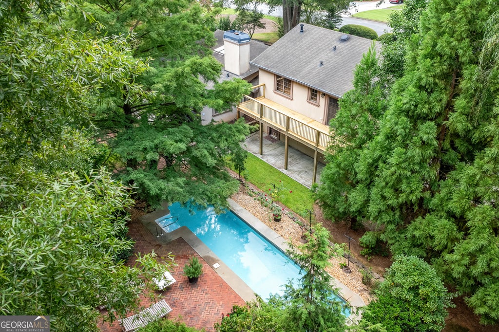 Two Homes + Private Pool + Park-like Backyard nestled on a .72-acre lot just minutes from vibrant Downtown Roswell, West Roswell Park, shopping and dining and top schools. The 3BR/2.5BA main home features a classic split-level design offering privacy and separation between living areas and bedrooms without the feel of a full two-story climb and boasting an open-concept living space with a renovated kitchen at the heart of the home. An elegant sunroom with a wall of windows offers serene garden views can also be used as designated dining room. A half bath completes the main level. Upstairs, the primary suite features a thoughtfully designed owner's bath with a steam shower, double vanity, whirlpool tub, bidet and private balcony. Two additional bedrooms share a full bath. The lower level includes a mudroom with washer and dryer, plus a flexible space that can serve as an office or storage. The single-level 2BR/2BA guest house welcomes you with a charming front porch and offers a fully equipped kitchen, great room, a primary suite with full bath, walk-in closet, and laundry hookups, as well as an additional ensuite bedroom. This guest house offers endless possibilities-perfect not only for visitors or multi-generational living but also as a dedicated hobby space. Whether you dream of an art studio, craft workshop, music room, or fitness retreat, this versatile space allows you to bring your passions to life right at home. Step outside to your own private, park-like retreat. The backyard showcases a sparkling swimming pool, perfect for summer relaxation and entertaining. Paved walkways create a graceful flow between lounging areas, vintage-style lighting, Japanese maples, azaleas, camellias, and shaded spots beneath mature trees. Surrounded by greenery and thoughtfully designed hardscapes, this outdoor oasis offers both beauty and functionality-a true extension of the home where you can unwind, host, or simply enjoy the peaceful setting. Both homes were fully renovated in 2008, including plumbing, electrical, and updated septic systems. Recent improvements in the main house include fresh interior paint, refinished hardwood floors in the main living area, new fridge, new cook top, new microwave oven combo, new balcony off primary suite. Offering space, versatility, and a backyard oasis, this home is where memories are meant to be made.
