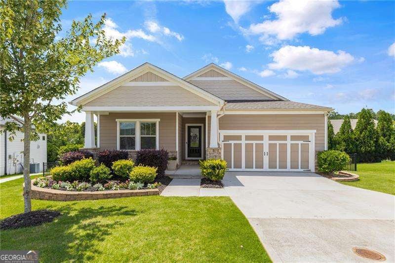 Beautiful Ranch on Cul-de-Sac Lot with Finished Basement in Sought-After Lauren Canyon! This energy-efficient, one-level living ranch home offers an ideal blend of comfort, style, and function. Open-concept layout seamlessly connects the kitchen, family room, and dining area. The stunning chef's kitchen features a farmhouse sink, granite countertops, floor-to-ceiling white cabinetry, subway tile backsplash, 4-seater island, walk-in pantry, and premium stainless steel appliances, including double wall ovens, separate gas cooktop, built-in microwave, and dishwasher. USB ports in the kitchen add modern convenience. Enjoy abundant natural light from numerous windows on the main level. LVP flooring flows through the main level, excluding bedrooms. The family room boasts a cozy fireplace and charming decorative windows, while upgraded light fixtures enhance every space. Full walk-in laundry room. The primary suite impresses with a tray ceiling, dual vanity with granite, large walk-in shower, tile flooring, white cabinetry, and huge walk-in closet. Downstairs, the massive, finished basement offers incredible flexibility with space for two offices, a second family room, bedroom with walk-in closet, full bath, workout room, and unfinished storage. Enjoy Southern charm from your rocking chair front porch and relax in the fully fenced backyard with an oversized access gate, covered back patio, and covered deck off the breakfast room-perfect for entertaining! Take advantage of resort-style Lauren Canyon amenities, including a pool, fitness center, clubhouse, tennis, golf, and playground. Conveniently located near Northside Hospital-Cherokee, I-575, shopping, and dining.