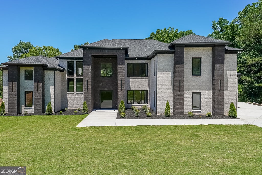 Step into your exquisite new construction masterpiece, where luxury meets comfort. This remarkable residence showcases an impeccable fusion of modern elegance and high-end craftsmanship, featuring premium fixtures and finishes at every turn. Upon arrival, you are greeted by a grand open floor plan that seamlessly connects the living space, illuminated by magnificent European-style windows that flood the area with natural light. A stylish powder room awaits your guests, while the gourmet kitchen is equipped with every amenity imaginable for an exquisite culinary experience, perfectly complementing the dining area. The main floor features an expansive primary master suite, designed for ultimate relaxation after a long day, complete with a luxurious and a dream-worthy walk-in closet. Additionally, a guest en-suite bedroom on the main floor offers convenience for hosting, with direct access to the outdoor porch. Two laundry rooms are conveniently located on each floor. Ascend to the upper level, where a secondary living room and powder room await, alongside a versatile theater room that can serve as a playroom for children or additional storage, tailored to your family's needs. The upper floor also includes a junior master suite and two generously sized en-suite bedrooms. Outside, a three-car garage complements the beautifully landscaped yard, featuring a covered porch with a gas fireplace and a custom outdoor kitchen, perfect for enjoying tranquil evenings. With the potential to build your dream pool on this expansive 0.72-acre lot CONNECTED TO SEWER, this is an opportunity not to be missed for making this exquisite home your own.