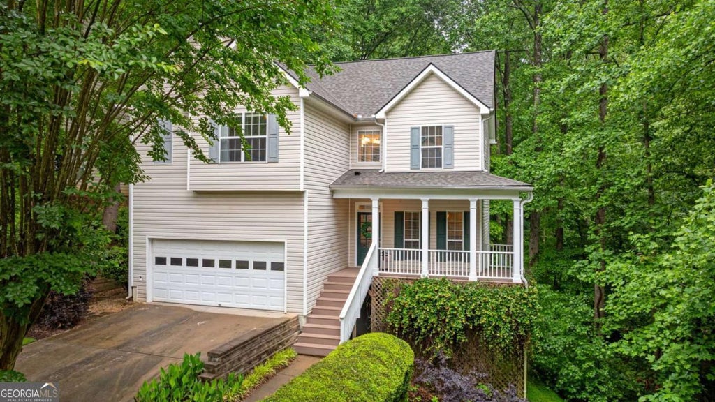 Welcome to this beautifully maintained 3-bedroom, 3.5-bath home tucked away on nearly 1 ACRE of a PRIVATE, WOODED LOT. Enjoy peace of mind with a 1-year-old roof, brand-new septic system, and recently installed carpet throughout. Step inside to an inviting OPEN-CONCEPT design highlighted by a soaring two-story family room, perfect for both everyday living and entertaining. The updated kitchen features QUARTZ countertops, SUBWAY TILE backsplash, STAINLESS STEEL appliances, and white cabinetry. All of this is overlooking the serene backyard with direct access to the spacious deck. Upstairs, the primary suite feels like a retreat, complete with a spa-inspired bath featuring a CUSTOM FRAMELESS SHOWER, large soaking tub, dual sinks, and a generous walk-in closet. Two additional bedrooms and a full bath complete the upper level. The PARTIALLY FINISHED BASEMENT with a FULL BATH provides flexible living space for a media room, home office, gym, or guest suite, while still providing ample unfinished storage space. Enjoy walk-out access from the basement to the FENCED BACKYARD. This home blends comfort, modern updates, and functionality. It is truly ready for you to move right in! This must-see home is also within walking distance to top-rated LAMBERT HIGH SCHOOL and just minutes from parks, shopping, restaurants, and GA 400! Schedule your private tour today.