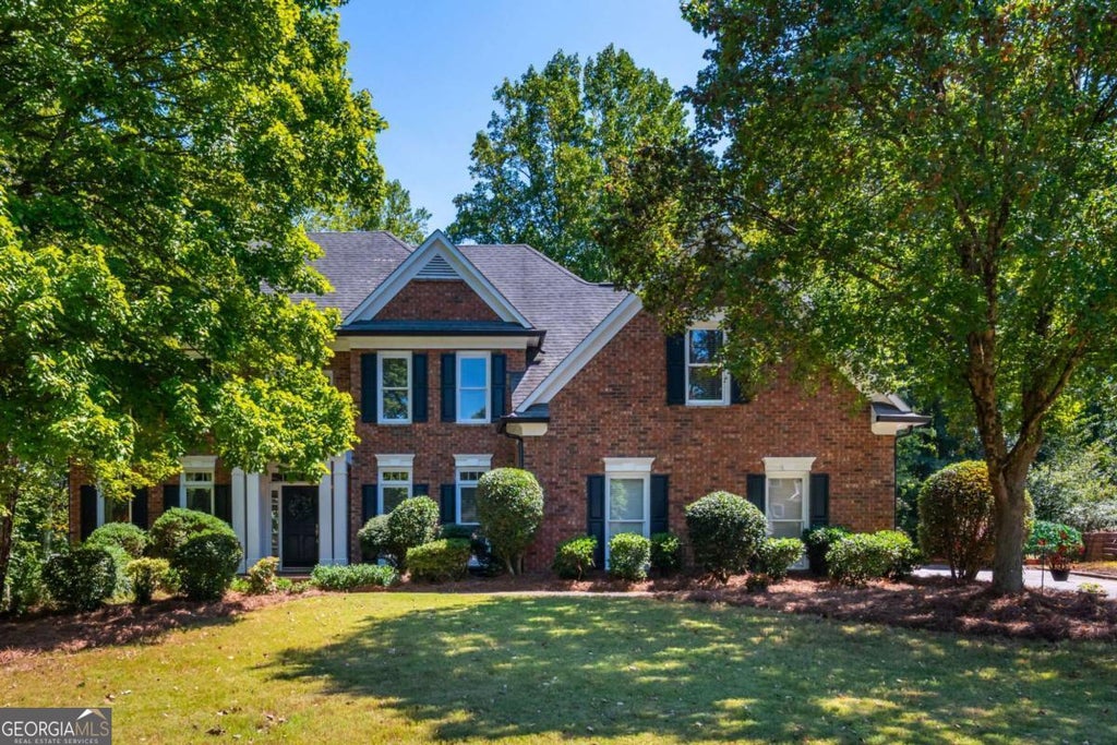 Brand new architectural roof with 10-year transferrable warranty + new back deck!Cul-de-sac + largest lot in the neighborhood, peaceful natural backyard with pond views! Nestled on nearly 2 acres (1.87 acres), this stunning home offers a rare blend of space, privacy, and community. Tucked at the end of a quiet cul-de-sac, the property is surrounded by nature while still being just a short walk to Sweet Apple Elementary, shops, restaurants, and parks. Step inside of this 3-sided brick home to find a light-filled two-story family room with a beautiful stone fireplace, open to a spacious kitchen that flows seamlessly onto a newly constructed back deck, perfect for entertaining! A sunroom off of the family room has windows all the way around and provides the ideal home office or flex space. A large formal dining room and living room add to the home's versatility. Laundry on the main level adds convenience. Upstairs, retreat to the oversized primary suite with a spacious primary bathroom featuring separate vanities and his-and-her walk-in closets. Three additional bedrooms share a well-designed Jack & Jill bath. The finished basement feels like a main level thanks to tall ceilings and natural light. The basement has a full bar area, bedroom/workout room, full bathroom, and plenty of storage, a perfect extension of your living space. The backyard is a natural oasis, offering peace and tranquility with views of the neighborhood pond. Gravel pad off the driveway adds a fun firepit/fellowship area and extra parking. All of this comes in an active swim/tennis community, making it the perfect place to enjoy both privacy and connection. Don't miss the chance to make this one-of-a-kind property your forever home!