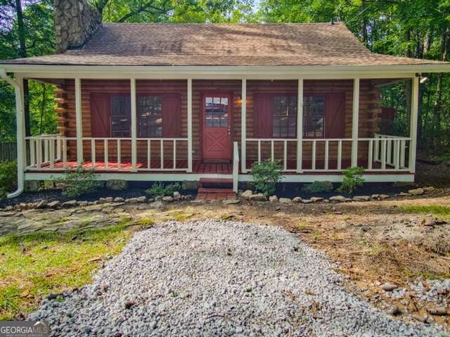 Tucked away in the heart of highly sought-after Douglasville, this rare gem is a true unicorn-a genuine log cabin, a style nearly impossible to find outside the mountains, now available in one of metro Atlanta's most desirable areas! This freshly updated 3-bedroom, 2-bathroom beauty boasts a spacious master on main, soaring two-story living room with a breathtaking stone wood-burning fireplace, and an upstairs loft that overlooks the entire space, perfect for relaxing or entertaining. You'll fall in love with the rustic charm blended seamlessly with modern updates: a gorgeous brick-lined kitchen with brand-new granite countertops, new LVP flooring on the main level, and refinished hardwoods upstairs. All appliances stay, making this move-in ready from day one. Step outside and you'll swear you've driven to the mountains-the stunning long gravel driveway winds through a private, wooded 1-acre lot, leading to your peaceful retreat. The expansive fenced backyard is perfect for pets, playsets, and backyard dreams, all without the burden of an HOA or rental restrictions-ideal for either a forever home or an income-generating rental. This property is dripping with character, privacy, and that hard-to-find cabin charm right in Douglasville. Don't wait-homes like this simply don't come along often and it will go fast! Property is sold as-is, where-is, with no disclosures, and all due diligence must be completed before submitting an offer. A home warranty up to $500 is available with an accepted offer-act now to make this one-of-a-kind property yours!