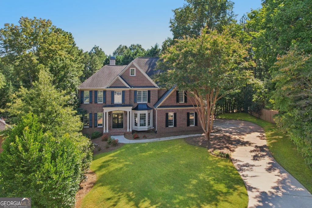 Welcome to this stately brick residence that blends timeless curb appeal with modern comfort. From the moment you arrive, the long driveway, lush landscaping, and classic front porch set the tone for a home designed for both elegance and ease. Inside, the soaring 2-story great room with its dramatic stone fireplace and wall of windows creates a stunning focal point, while the open layout flows seamlessly into the kitchen and breakfast area. With granite counters, stainless steel appliances, a center island, and abundant natural light, the kitchen is perfect for everyday living or entertaining. The spacious primary suite is a serene retreat, featuring a sitting area surrounded by bay windows and a spa-like bathroom with dual vanities, soaking tub, and glass shower. Step outside to enjoy a private wooded backdrop from the covered deck or patio, ideal for relaxing afternoons. With thoughtful details throughout, generous living space, and a location in a desirable community complete with a playground, pool, racquetball, sidewalks, and tennis courts.