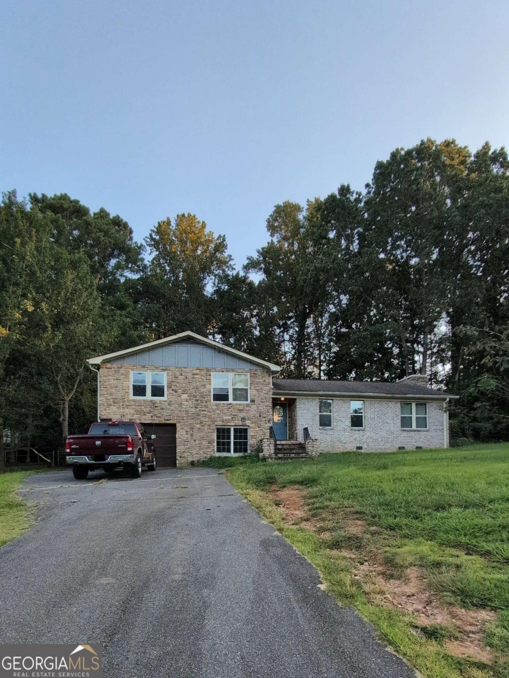 *Check back soon for more photos* Get ready to call this house your next home or investment property! This split-level home is located in a community with no HOA or rental restrictions. The main level features tile and hardwood flooring paired with stone accent walls. The kitchen, dining/living room, and family room are all located on the main level. The eat-in kitchen has sprawling stone countertops w/ breakfast bar, a stainless steel dishwasher, plenty of cabinet space, and tile flooring. Upstairs details all bedrooms and full bathrooms. The primary suite has its own full bathroom. The basement boasts a large bonus room that can act as a bedroom, an additional room, and a laundry room. The fenced backyard has an in-ground pool, a large covered patio, and a storage shed. Close to shopping, dining, recreation, and Woodstock ES, MS, and HS. Seller is open to blind offers, so get your offer in today!