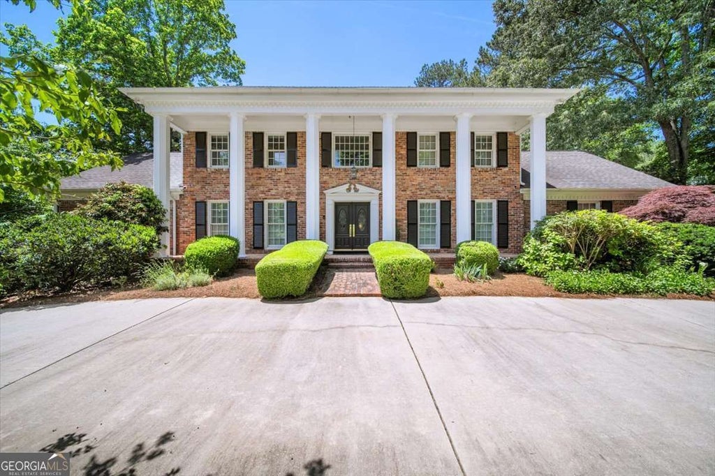 Nestled on a sprawling one-acre corner lot adjacent to Dunwoody Country Club, this renovated Colonial-style classic in Chaparral Estates offers timeless elegance, resort-style living and modern luxury. Boasting 5 spacious bedrooms, this home is designed for both, grand entertaining and serene family living, punctuated by a sanctuary-like yard with pool. Step inside to discover a light-filled interior with all new windows, plantation shutters, and recessed lighting throughout, highlighting the expansive den and great room perfect for gatherings or cozy evenings. The first-floor guest suite can double as a second mini-master bedroom, providing flexibility and convenience with its own luxurious en-suite bath and walk-in closet. And the expansive dining room can accommodate any large holiday meals. The updated chef's kitchen includes a breakfast nook newer cabinets, granite countertops and pro-grade stainless steel Dacor appliances. Your large master bedroom with expansive closet boasts a stunningly renovated spa with high-end finishes and thoughtful design which simply must be seen. Secondary upstairs bedrooms are all large as well with copious storage. The fully finished basement is a standout, complete with a full kitchen ideal for multi-generational living, hosting, or au pair suite, along with a gym/flex room. Outdoors, the main-level walk-out pool is surrounded by a lush, transcendent, gardener's paradise with walking path and charming gazebo, creating a private oasis for relaxation or al fresco dining. Side yard affords plenty of space for a swing set or fire pit. With meticulous updates, ample space, not a shred of carpet and an unbeatable location, this gem checks every box!