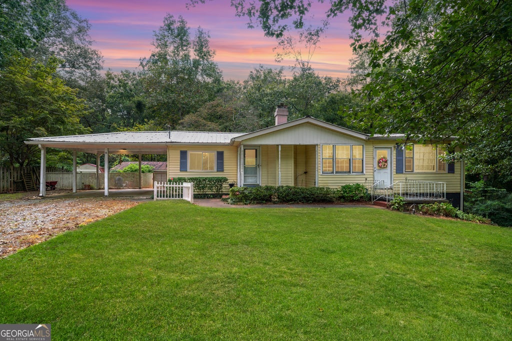 Welcome to this classic ranch-style home nestled on a beautifully wooded and private lot with no HOA and endless potential. Situated on nearly 2 acres, this property offers a serene escape with room to breathe, grow, and make it your own. Step onto the covered front porch, one of two separate entrances into the home, and enjoy the peace and quiet of your surroundings. Inside, you're greeted by a warm and inviting family room featuring rich wood flooring, abundant natural light, and a cozy fireplace-the perfect place to relax or entertain guests. Just off the family room, the kitchen boasts rustic white cabinetry, plenty of countertop and cabinet space, and a layout ideal for everyday cooking or hosting. A separate dining room offers space for formal meals or family gatherings, conveniently located near both the kitchen and living areas. The home's second entrance opens into a spacious great room-a flexible space that can serve as a secondary living area, home office, playroom, or entertainment zone. This room includes built-in bookcases, wood flooring, and is ready to be customized to fit your lifestyle. The primary bedroom is generously sized with natural light and wood flooring, while two additional bedrooms offer comfortable space for guests or family. A shared full bathroom features a vanity with added storage and a shower/tub combo. Downstairs, a partial basement provides even more possibilities. This area includes a partially finished secondary full bath and could easily be transformed into an additional living area, home gym, or bonus room. With walk-out access to the backyard and a separate side entrance, it's perfect for multigenerational living or a potential rental opportunity. Outside, enjoy the expansive backyard surrounded by trees for total privacy. The back deck features both a covered section-ideal for all-weather relaxation-and an open-air portion, perfect for grilling and soaking in the sun. A detached workshop on the property provides additional storage or could be converted into a fantastic game-day hangout or creative space. Additional highlights include: Covered 2-car carport with extra driveway parking, No HOA, complete privacy, a spacious yard to plant a garden and enjoy nature. This home offers a great investment opportunity with room for updates and personalization! Whether you're looking for your forever home or an investment with potential, this property offers the best of country living with flexible spaces and a layout that can grow with you. While offering lots of privacy, this home is centrally located within minutes of local shopping and restaurants, as well as all of the amazing local amenities that Downtown Canton has to offer such as The Mill, Etowah Park, and so much more.