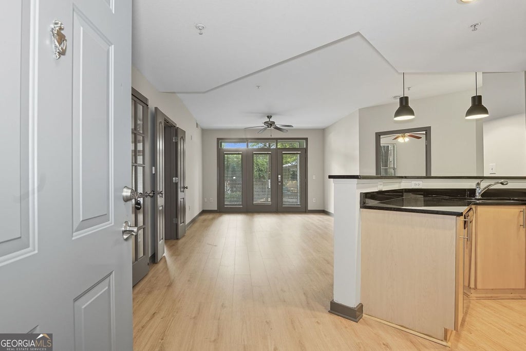 Live Where Atlanta Happens! Step into this stylish 2 bed, 2 bath ground-floor condo in the heart of vibrant, walkable Atlantic Station! Freshly painted with new carpet and new flooring, this open-concept unit features a spacious open kitchen with modern cabinets, granite counters, and stainless appliances. Enjoy lots of natural light and a private patio just a few steps from the pool. This fashionable condo is laid out well for roommates and has an excellent space to work from home. The separate dining room has been upgraded with a French door, so it works as a dining room, an office or can even be used as a third bedroom! Both main bedrooms offer walk-in closets and en-suite baths. You'll love the in-unit laundry, ceiling fans, and pet-friendly vibes. The Element community offers 24/7 secure access, concierge, gated parking (2 deeded spots!), and top-notch amenities: pool, gym, clubroom, pet walk, and a 7-acre walkable park. Stroll across the footbridge to the shops and restaurants of Atlantic Station, Target, Publix, IKEA, MARTA, Midtown, even walk to GA Tech and much more. Urban convenience meets quiet comfort - don't miss out!