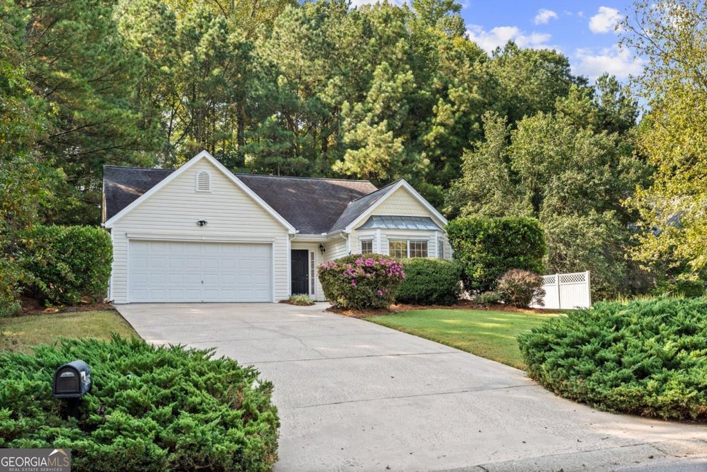 ADORABLE 3 BEDROOM RANCH ON LARGE LOT IN GREAT SOUTH FORSYTH LOCATION NEAR SCHOOLS, CUMMING CITY CENTER, GREENWAY AND EASY ACCESS TO GA 400! NO HOA! Freshly painted and well maintained with newer roof, HVAC and water heater. Open concept floor plan with vaulted family room with gas fireplace, and dining area. Kitchen has view to family room and dining. Primary bedroom is vaulted and has ensuite bath. It is separated from secondary bedrooms. Walk out from main level to sunroom with private backyard. Attached 2 car garage and plenty of parking in driveway. Quiet established community. Walkable to new elementary school. This is a great value on a sought after ranch! Hurry!