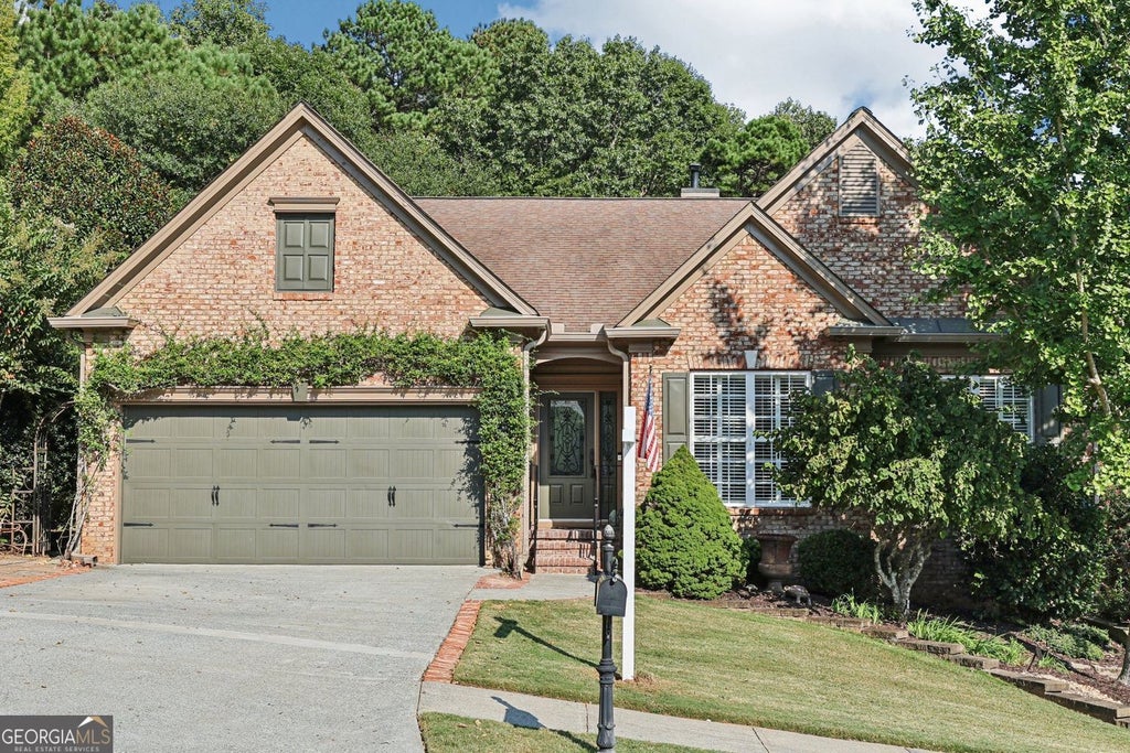 Welcome to 103 Whirlaway Place, a charming ranch on a finished terrace level located in the highly desirable swim and tennis community of Brookshire in the heart of Woodstock. This 3-bedroom, 3-bath home offers comfort, convenience, and exceptional amenities in a prime location close to shopping, dining, and vibrant downtown Woodstock. Step inside to find a light-filled family room with a cozy gas fireplace, a first-floor office, and a spacious primary suite on the main level. The kitchen features granite countertops, stainless steel appliances, and newer appliances throughout, with all appliances included. Beautiful hardwood floors, brand-new carpet, and thoughtful finishes make this home move-in ready. Enjoy mornings and evenings on the covered porch overlooking a master gardener's dream - a beautifully landscaped, fenced backyard that backs up to Corps property, ensuring peaceful woodlands and lasting privacy. The finished terrace level expands your living space with a large recreation room complete with a wet bar, a full bath, and an additional bedroom. There's also abundant storage space to keep everything organized. Brookshire offers a true lifestyle community with multiple pools, tennis courts, pickleball, basketball, clubhouse, and parks. With its unbeatable location, natural privacy, and resort-style amenities, this home blends everyday comfort with the best of Woodstock living.
