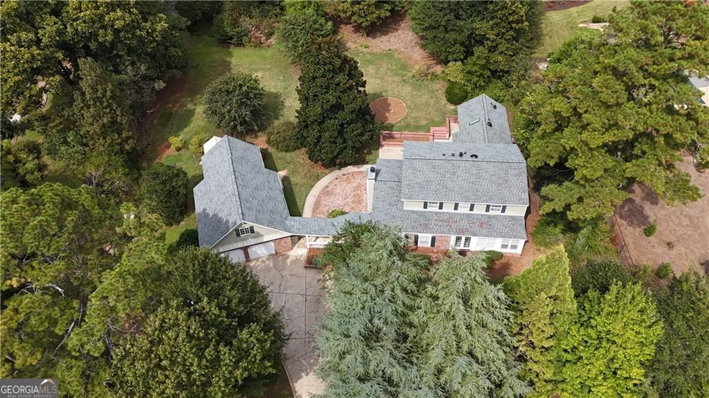 Located in the sought-after Lassiter High School district, this spacious home offers a primary-on-main floor plan on a spectacular oversized lot. The home's layout is configured to enjoy easy access to the great outdoors with French doors in the kitchen, family and primary suite opening out to the rear patio with raised brick beds, and mature landscaping in the several beds around the property. The home's interior features abundant natural light, hardwood floors on the main, a large family room, and a center island kitchen with a prep sink and views to the family room. The bright and sunny dining area will easily accommodate seating for twelve. The primary suite features trey ceilings and a large bath with a vaulted ceiling and so much natural light with a spacious walk-in closet. A bonus room between the primary bed and dining room has been used as a music room; it would also be perfect for a home office or sitting room as part of the primary. Upstairs you'll find three bedrooms - one an ensuite - and a bonus area, perfect for a home office or studio! This home is a fantastic find for buyers who would like to purchase at a lower price point and make updates to their own taste. The roof was recently replaced and several of the HVAC components are newer; 4 separate units on the property (downstairs, upstairs, primary suite and the fully conditioned garage). A huge bonus is the semi-attached garage (220 available) connected to the home via a charming breezeway; this space includes a workshop, and upstairs attic/storage space with a handy shed behind the garage. Great location close to the Woodstock and Roswell entertainment areas, and super convenient to shops, restaurants, parks and schools.