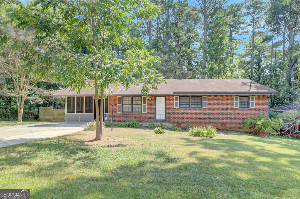 Welcome home to this 3-bedroom 1.5-bathroom midcentury brick ranch nestled on a private lot with an extra wide driveway/parking pad that wraps around to a private fenced backyard. Inside you'll find original hardwood flooring throughout the living room, dining room and bedrooms. The tiled kitchen offers plenty of cabinet space as well as granite countertops and access to the patio in the backyard. The hall brings you to two bedrooms that share a full hall bath as well as a primary bedroom with ensuite half bathroom, complete with charming original midcentury tile! Separate laundry room can be found inside the screened porch off the kitchen . . . outdoor living space to sit back and enjoy this quiet neighborhood only minutes from East Atlanta Village, I-20 and 285. There is an unfinished basement accessible from the exterior that offers 600+ sf of storage space as well. With a few updates here and there, this home will have it all!