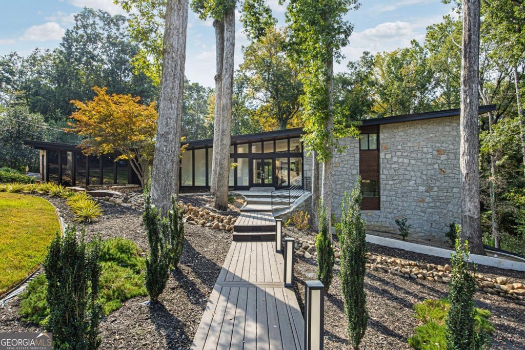 Welcome to 4144 Flintlock Road NW, a fully renovated mid-century modern masterpiece in the heart of Buckhead. Set on a private 1.24-acre wooded lot, this home offers over 5,500 square feet of luxurious living with an open, light-filled layout. Floor-to-ceiling windows, hardwood floors throughout, and a dramatic great room create a seamless flow between sophisticated gathering spaces. The chef's kitchen features custom cabinetry, professional-grade appliances, and a walk-in pantry, while the sunken den leads to a unique secondary owner's suite with two attached bathrooms. The primary suite is a true retreat, highlighted by a spa-like bath with dual vanities, soaking tub, and oversized shower. Designed for both relaxation and entertaining, the finished basement level is designed for entertainment and wellness which boasts a fully equipped second kitchen and a private gym. Don't forget beautiful home theater with wet bar! Outdoor living is equally impressive with expansive decks, lush landscaping, and a serene koi pond. With multiple owner's suites, versatile living areas, and thoughtful modern upgrades-including smart home features-this property balances elegance and functionality. Located in the prestigious Mount Paran-Northside community and zoned for top-rated schools, it is a rare opportunity to enjoy privacy, luxury, and convenience in one of Atlanta's most sought-after neighborhoods. Surrounded by homes selling at $2.5M and above, this residence is offered at an incredible $1,895,000, presenting a rare opportunity to enjoy privacy, luxury, and value in one of Atlanta's most sought-after neighborhoods. Please note: All showings require re-approval prior to confirmation.