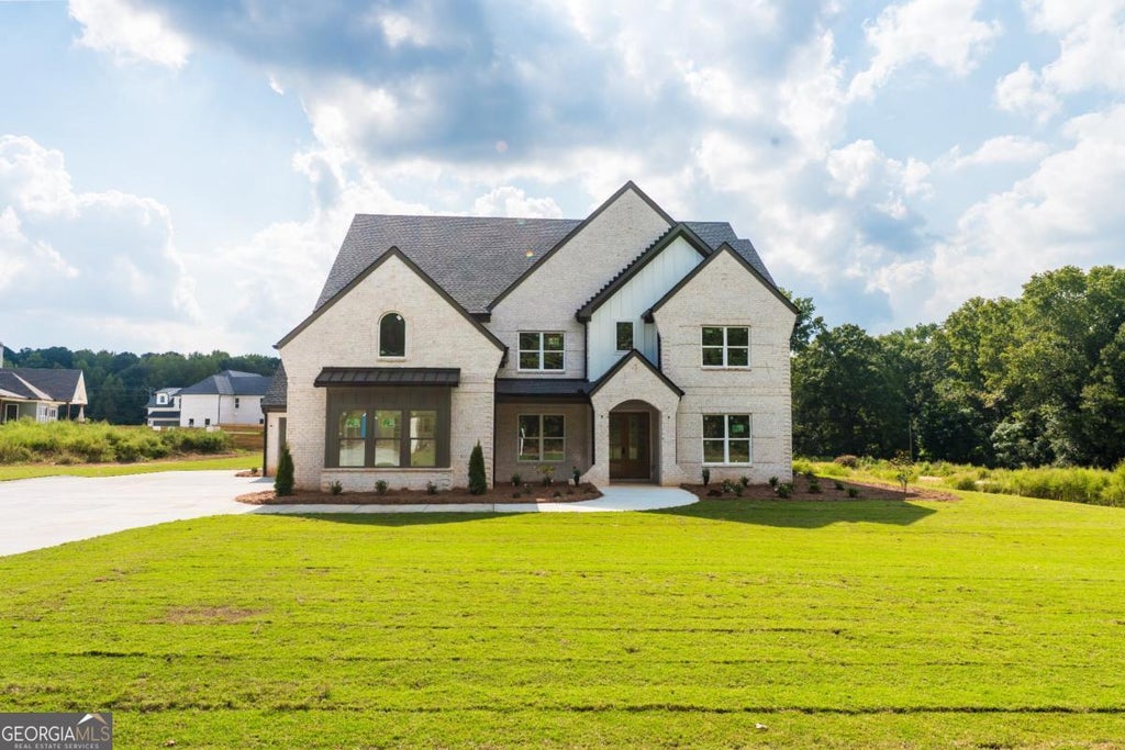 Discover unparalleled elegance in this nearly completed Craftsman Estate, nestled on a private 1.59-acre lot with 200 feet of frontage. Boasting over 5,200 square feet of meticulously crafted living space, this home seamlessly blends timeless design with modern luxury. The chef's kitchen is a true showstopper, featuring top-rated appliances, custom cabinetry, and a gourmet prep kitchen, ideal for culinary enthusiasts and entertaining with ease. The residence offers two primary suites-one on the main level and another upstairs-each with spa-inspired baths and generous walk-in closets. Three additional bedrooms, each with its own private en-suite bath, provide comfort and privacy for family and guests. Entertain in style with a formal dining room, a spacious living room anchored by a fireplace, a private office, and an upstairs media room with its own fireplace, perfect for movie nights or casual gatherings. Step outside to the covered patio, where a third fireplace sets the perfect ambiance for al fresco entertaining. The expansive backyard offers room for a future pool or outdoor retreat. Luxury features abound throughout, including engineered hardwood flooring, spray foam insulation, dual laundry rooms, an EV charging station, and a hot water option at the outdoor faucet. With 10-foot ceilings on the main level, 9-foot ceilings upstairs, and 8-foot doors throughout, every detail reflects high-end craftsmanship. Experience the epitome of refined living at 3287 Hall Rd, where privacy, elegance, and thoughtful design come together in one extraordinary home. Expected completion: End of October