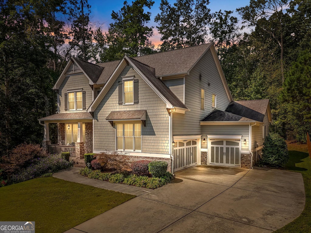 Welcome to 1415 Sutter's Pond, a custom-crafted home that blends elegance and rare privacy in one of West Cobb's most sought-after communities. Featuring one of the most desirable and rarely available floorplans, it offers a layout as unique as its setting! Set beside the neighborhood's preserved greenspace & nature trail, it offers a lifestyle where mornings begin with sunlit interiors and evenings end outdoors, surrounded by trees and seasonal views of the pond. Curb appeal is undeniable with a blend of brick, premium fiber-reinforced cement siding installed in solid panels, shaker accents, framed by a rocking-chair front porch. The seamless design enhances the timeless look while offering superior durability and low maintenance. Professional landscaping softens every angle, from blooming crepe myrtles and manicured beds in front to the lush tree line wrapping the property - giving the home both elegance and enduring strength from the very first glance. Inside, natural light spills across hardwood floors from the two-story foyer into the formal dining room and expansive main living area. From this vantage point, the upstairs catwalk with wrought iron balusters and elegant hand railing adds architectural detail and an open, airy feel. The kitchen anchors the home with an oversized island, granite countertops, abundant cabinetry, and double ovens. Expansive counter space and a breakfast bar make it as functional as it is beautiful, opening to a sunlit dining space that's perfect for everyday meals or morning coffee. The living room is designed for both comfort and connection, with soaring ceilings, walls of windows, and custom built-ins framing the fireplace. It's a true gathering space, filled with natural light by day and warmth by night, where everyday living and entertaining come together. The oversized main-level primary suite is a private sanctuary, with trey ceiling, an abundance of windows offering natural lighting and wooded views. French doors lead to the ensuite, where a spa-like bath offers a deep soaking tub, a glass-enclosed shower with built-in bench, and dual vanities topped with marble. The walk-in closet connects directly to the laundry room, bringing both luxury and convenience to daily life. Upstairs, the elegant staircase leads to two bedrooms connected by a true Jack-and-Jill bath, each with its own vanity and walk-in closet. A third bedroom with trey ceilings enjoys the privacy of its own ensuite and vast walk-in closet. The bonus room flexes easily as a media room, office, or potential fifth bedroom. The second laundry room completes the upstairs layout perfectly. Outdoor living feels like an extension of the home. The private screened porch invites coffee mornings and dinners al fresco. Framed by mature trees and seasonal views of Sutter's Pond. Beyond the professionally added retaining wall, designed with drainage that carries water away from the home are custom steps leading down the side of the property. From there, one of the community's most treasured features awaits: the .7-mile walking trail around the pond, ensuring this side of the property will always remain private and wooded. The daylight, walk-out basement feels like a true extension of the home, accessed by matching hardwood stairs and railing. With tall ceilings, expansive windows, and a covered patio below, it's a level ready to transform into anything you envision - from multigenerational living to an incredible entertainment space, or simply the dream layout you've always wanted. Sutter's Pond is a conservation community, designed to preserve green space and provide natural amenities. Sidewalks, streetlights, and a community pool within walking distance, while top-rated Cobb County schools - zoned for Harrison High - complete the lifestyle. This is more than a house - it's a home that captures the best of West Cobb living: elegance, privacy, convenience, and the ability to grow into the space for years to come.