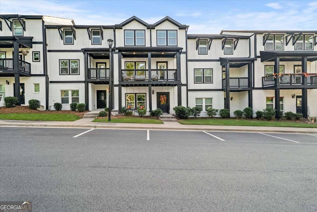 Overlooking a Nature Reserve with no neighbors in front, this stunning 3-story townhome is completely move-in ready! Tucked away in a quiet setting yet close to shopping, dining, and commuter routes, it offers the perfect balance of privacy and convenience! Inside, you'll find an open-concept layout ideal for both daily living and entertaining. The exterior features a crisp design with bold black-and-white contrast, charming front porch, and two covered balconies looking onto the beautiful nature reserve - expanding your living space outdoors. The kitchen shines with modern finishes, an oversized island, double ovens, a gas cooktop, and flows seamlessly into the sitting area, dining space, and family room. Upstairs, the primary suite features a spa-like bath and generous walk-in closet. Secondary bedrooms are roomy and versatile! The finished lower level adds even more flexibility-whether you need a media room, playroom, or fitness space. Added bonuses: Brand NEW CARPET, freshly PAINTED INTERIOR, a 1-YEAR 2-10 Home Buyers Warranty, and up to $5,000 in seller paid CLOSING COSTS!! With low-maintenance living in a well-kept community and the peace of mind that comes with a newer build, this home truly checks every box. Enjoy resort-style community perks like scenic walking trails, a sparkling pool, and the convenience to downtown Woodstock!