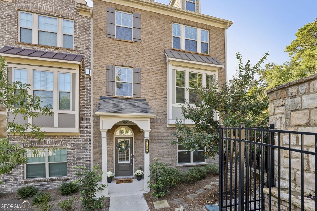 Sophisticated Living in the Heart of Chamblee! Nestled on a Quiet, Tree-Lined Street within the Secure, Gated Community of Clairebrooke, this End-Unit Brick Townhome blends Modern Elegance with Everyday Comfort. From the moment you walk inside, you'll notice the Difference Bright, Airy Interiors, Polished Finishes, and Thoughtful Design Touches at every turn. Enjoy the rare luxury of a Private, Fenced Front Courtyard perfect for Relaxing with a book or Hosting Guests. The Daylight Terrace Level welcomes you with a Foyer, plus a Bedroom and Full Bathroom that offer ideal space for a Guest Suite or Home Office. The Open-Concept Main Level is designed for both Style and Function. The Chef's Kitchen is a True Showstopper with a Large Quartz-Topped Island, White Shaker Cabinets, Stainless Steel Appliances, and a Sleek Herringbone Backsplash. Flow effortlessly into the Dining Room and Living Room, where an Elegant Fireplace with a Chic Tile Surround creates the perfect gathering spot. A door off the Dining Area leads to a Private Balcony, ideal for Morning Coffee or Al Fresco Dining. A Powder Room completes this level. Upstairs, the Primary Suite offers a peaceful retreat with a Tray Ceiling, Spa-Inspired Bathroom with Dual Vanities, a Large Stone-Tiled Shower with Bench, and a Walk-In Closet. Two Additional Bedrooms, a Full Bath, and a Convenient Laundry Room complete the upper level. Unbeatable Location just minutes to Downtown Chamblee, Blackburn Park, Dresden Park, Shopping, Dining, and more. Easy access to Major Highways makes commuting around Atlanta a breeze. Community amenities include a Dog Run and Fire Pit Gathering Area, creating the perfect space to connect with Neighbors, Family, and Friends. This Move-In Ready Townhome delivers Luxury, Convenience, and a Lifestyle you'll love.