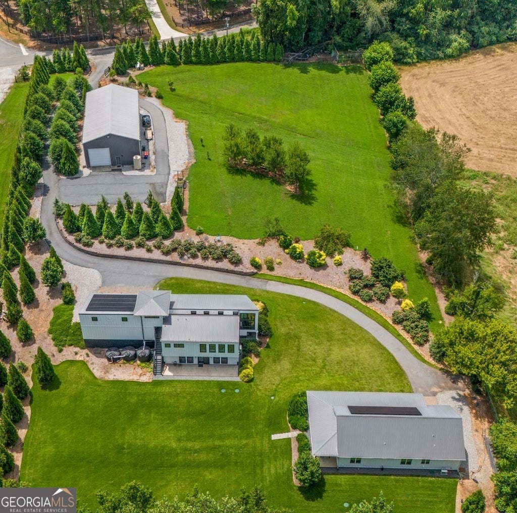 Experience a rare opportunity to own a gated estate in Canton, GA, featuring both a custom Scandinavian-style farmhouse and a charming solar-powered cottage. Thoughtfully designed for sustainable living and modern comfort, this property blends timeless farmhouse charm with cutting-edge efficiency. Passive south-facing solar + active Enphase micro-inverter systems on both homes. Grid-tied with one-to-one production credits. Battery-ready for full off-grid autonomy. 7,500-gallon rainwater capture system, triple-filtered to 5m with UV purification, pH 7 balance, plus CCWSA city water as backup. Luxury interior finishes including: wood-grain ceramic tile main level, sealed concrete terrace level. Custom shiplap walls, authentic brick accents, quartz & Carrera marble surfaces. Owner's bath: Italian Carrera marble, 65-gallon Japanese soaking tub, rain shower, floating vanities.