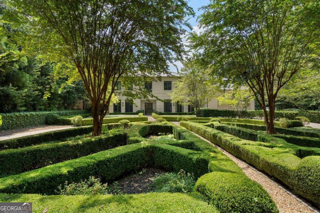 Beautifully designed custom home in Buckhead, situated on a private 1-acre lot. This stunning modern-transitional residence was meticulously crafted by AFG Builders under the thoughtful guidance of Harrison Design. This home showcases timeless architectural design and exquisite craftsmanship. As you step into the two-story foyer with stone floors on the main level, you're greeted by the open living room space featuring 12 foot ceilings and a wall of glass with doors that walk out to the pool. The quality of construction is evident, featuring triple-locking solid wood doors throughout. Beyond the pool, you'll find a spacious fenced yard that's part of the property, offering the perfect space for activities like pickleball. The main floor has a second primary bedroom with french doors out to the pool as well as the main primary bedroom suite upstairs. The primary bedroom upstairs features a study, fireplace, a private terrace and two exceptionally large dressing rooms. Additionally, there are three secondary bedrooms, each with an ensuite full bathroom, provide ample accommodation options. An elevator conveniently connects all three floors. The all glass second stairwell lets in exceptional lighting and is a sculptural masterpiece in itself. The main stairwell is signature Harrison Design with large windows and a wrap around stair up to the second floor primary suite. The dining room opens to the garden and grilling area, creating a seamless connection between indoor and outdoor living spaces. The sleek kitchen and breakfast room feature gorgeous countertops, stainless steel appliances, custom cabinetry, a large walk-in pantry and separate coffee bar station. The family room, complete with a fireplace, opens to an enclosed screened porch next to the pool. Additional outdoor amenities include a pool bath and an outdoor shower. The daylight terrace level is an entertainer's dream, offering a kitchen, billiards area, fireplace, wine cellar and a full bath. It also serves as an excellent guest apartment. An additional room can be used as a media room, gym, or golf simulator space. This custom eco-conscious home was constructed with sustainability in mind. Features such as insulated concrete exterior walls, icynene insulation in the attic for airtight energy efficiency, a standing seam metal roof, solar panels for water heating, and a circulating hot water system for reduced water usage exemplify its commitment to sustainability. Throughout the home, you'll find earth-friendly materials like recycled glass and sustainable woods, including alder doors/windows and lyptus floors. Located in the highly sought-after 30327 zip code on the West side of Buckhead, this property boasts the most coveted address in the area. Embraced by a lush tree canopy, the estate-sized lots surrounding this home provide an enchanting natural setting. Its prime location offers easy access to all that Atlanta has to offer, including top-notch restaurants, excellent schools, a mere 30-minute drive to the airport, and much more.
