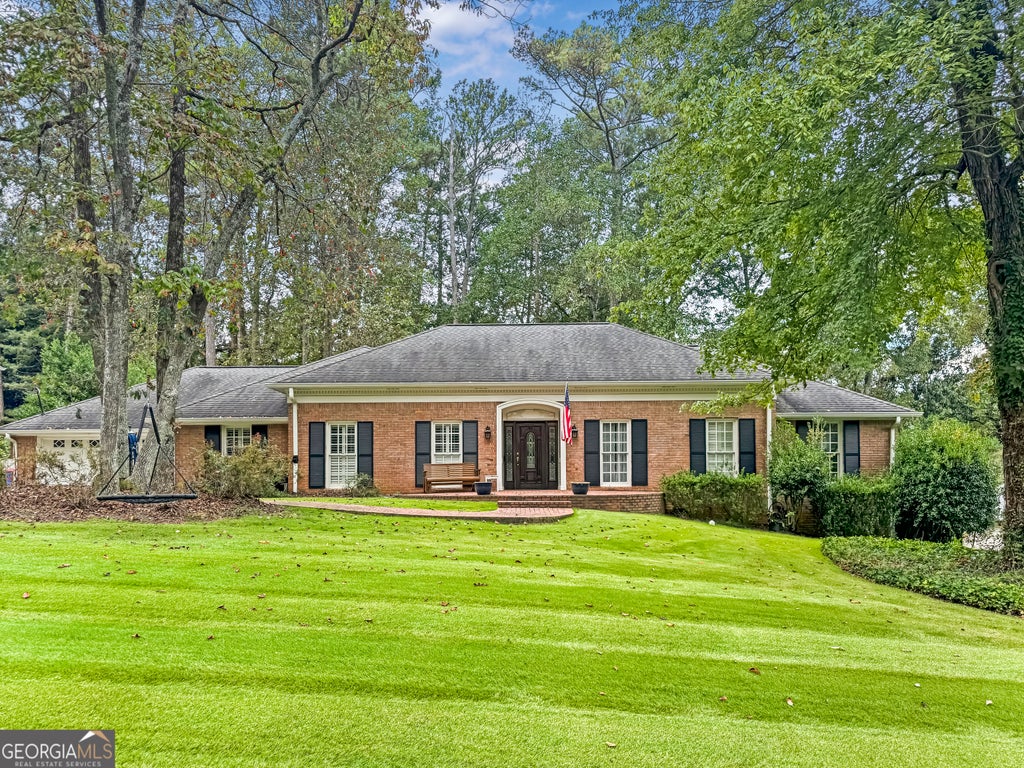 This is your chance to get a ChathamBilt Ranch in the coveted Rivershore Estates! This is a well maintained example of the high quality homes that made the builder famous. 5735 Riverwood features one story living at its best and a HUGE basement. Renovated baths and an updated kitchen make this home move-in ready. Talk about cabinets galore! Beautiful wood cabinets with granite counters and a marble backsplash perfectly complement the stainless steel appliances. The eat-in kitchen has a bay window overlooking the firepit and yard. You'll also find a huge laundry room/pantry off the kitchen, perfect storage for those Costco runs. The sunroom opens to the kitchen and family room with French doors, and the walls of windows and tiled floor have a wonderful outdoor feel, while still being nice and cool inside. The fireside family room features built-ins and will become the heart of your home. The main floor features 4 spacious bedrooms (all with gorgeous hardwood floors) and 3 full baths. The primary bedroom suite has 2 closets, a double vanity, and access to the deck. The deck is reinforced to support a hot tub. This lot is perfect for a pool, if that's your thing, or you can just enjoy the private, fenced yard as it is. The beautiful and stately exterior: floor to ceiling windows along the front of the home, and an expanded entry way with a beautiful wood door with side lights. The large finished terrace area has ample daylight and makes a great playroom or theatre. And plenty of unfinished basement remains ready for extra living space or storage. It is stubbed for wet bar and bath... This home also has a wide selection of outdoor living spaces. From the deck that spans across the back of the home, to the lower level covered patio, expanded paver patio with the firepit, the garden areas, or the luscious front yard and flat wide driveway this home has it all! Voluntary HOA of $55/year provides a vibrant community with social events. Rivershore Estates is centrally located in Sandy Springs near the Abernathy Greenway and provides quick easy access to I-285 and GA-400. AAA public schools, The Epstein School and many other top private schools are around the corner. Meet your neighbors at HOA events and the Mountaire Community Pool. Don't wait on this one. Houses sell quickly in Rivershore Estates... Ask agent or search the address online for a 360 Virtual Tour. Click and drag to look all around!