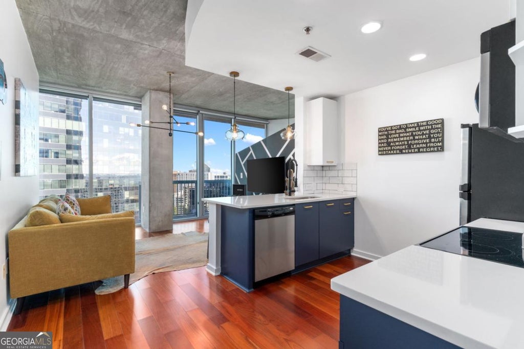 BEST VALUE OPPORTUNITY IN BUCKHEAD! THE REALM - CENTRALLY LOCATED NEAR PIEDMONT/PEACHTREE INTERSECTION - RENOVATED KITCHEN AND PRIMARY BATH! 18th-FLOOR BEAUTIFUL BALCONY VIEWS - This 1-bedroom, 1-bathroom condo offers over 730 square feet of exceptional living space with a highly motivated seller ready to close quickly. This condo boasts smart design and fine living with an open-concept layout. The renovated kitchen is thoughtfully equipped with stainless steel appliances, quartz countertops, and ample cabinetry, perfect for culinary enthusiasts. The interior is complemented with floor-to-ceiling windows that provide abundant natural light and Northern Buckhead and Dunwoody skyline views. Retreat to your private balcony and soak in the skyline views each and every day. This could also be your chance to own your own private pied-a-terre where you can "have a foothold" in a different location whether for work, leisure, or convenience! And there's no need to trek to the laundromat, as a washer and dryer are conveniently tucked inside your unit. This Realm features an array of desirable amenities including a fitness center, 9th floor rooftop swimming pool, common outdoor space, and a 24-hour concierge service. Enjoy the luxury of a deeded, assigned parking space within a gated community, with both garage and elevator access. Don't miss the chance to own this gem with a motivated seller eager for a quick transaction. Schedule your viewing today to experience the best value in Buckhead!
