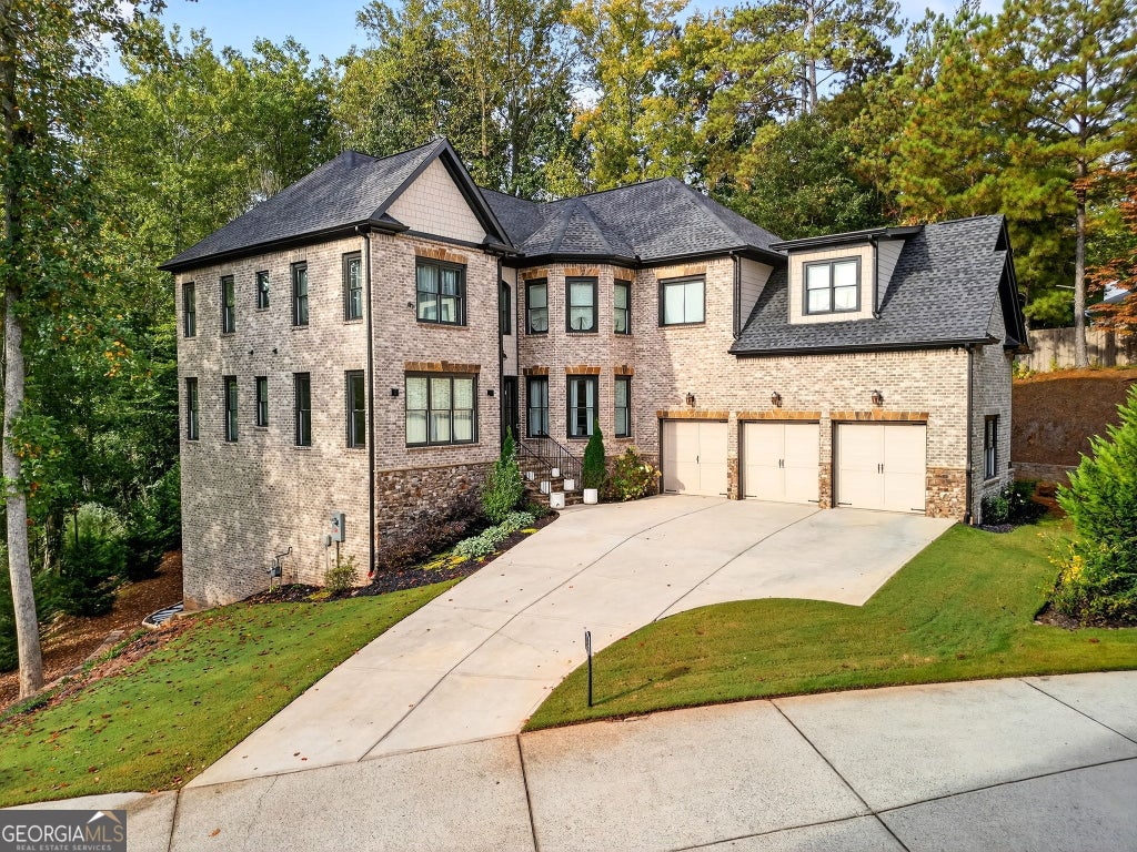 Welcome to this stunning custom residence where thoughtful design and timeless luxury meet. At the heart of the home is a chef's dream kitchen featuring a smart Jenn-Air oven controllable from your phone, seamlessly integrated Thermador refrigerator and dishwasher, a beverage refrigerator, and a microwave drawer. The oversized quartzite island, raised for comfort and crafted with a sophisticated mitered edge, serves as both a designer showpiece and the hub for gatherings. High-end Brizo fixtures, true wood floating shelves, and a seamless connection to the family room complete this exceptional space. Every detail of the home has been elevated, from 8-foot doors on the main level to the striking double-sided limestone fireplace that anchors the living areas. The powder room features a custom vanity with a six-inch miter edge, designed to impress with its statement-making style. The primary suite offers a private retreat with a generous seating area, custom His & Her closets, and a dream-worthy closet complete with a six-foot island and a dedicated lounge for journaling or makeup. The spa-inspired bath includes an oversized Kohler soaking tub framed by floating shelves and natural sunlight, a steam shower with bench and cubby storage, and a 60-inch vanity with elegant detailing. Gold Brizo fixtures throughout add a touch of daily indulgence. Additional highlights include a beautifully appointed Jack & Jill bathroom with floor-to-ceiling tile, a custom powder room vanity, and luxury finishes that set this home apart. This property is more than a home-it's a lifestyle, offering sophistication, comfort, and thoughtful design at every turn.