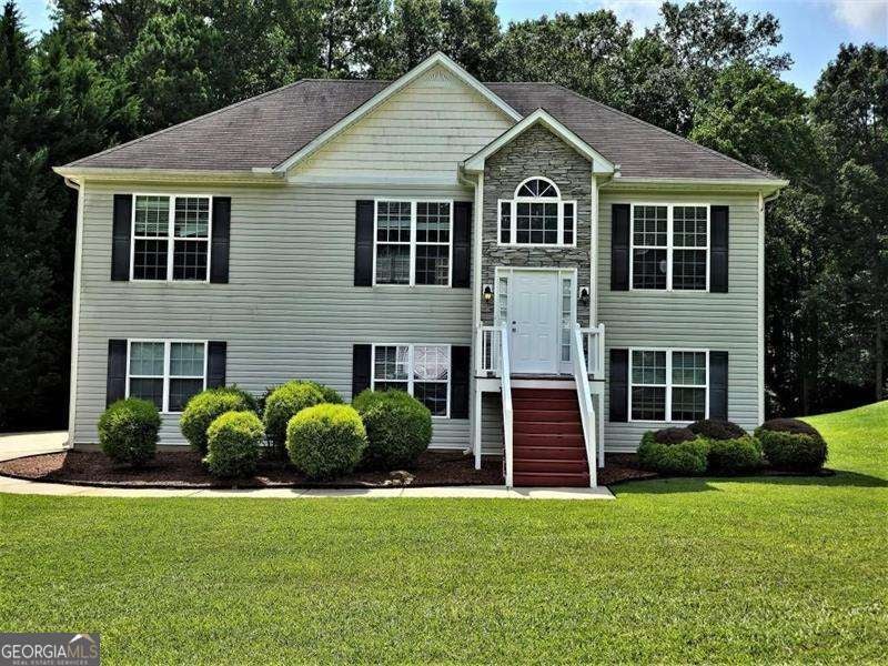This sought after split-level home boasts an open floor plan and ample living space. The family room includes a vaulted ceiling, a fireplace, and connects seamlessly to the dining area and kitchen. Enjoy luxury vinyl plank flooring in the family room, kitchen, and dining areas, while the bedrooms feature cozy carpets and the bathrooms showcase elegant ceramic tiles. The kitchen's oak cabinets complement the laminate countertops that mimic a granite finish, along with a stainless steel appliance package. The master suite, situated at one end of the house, offers a bedroom with a trey ceiling, a bath with a double vanity, a separate garden tub, and a step-in shower. Additionally, there are two more bedrooms and another full bath on the main level. Downstairs, a spacious room with a closet can serve as a versatile space-whether as a fourth bedroom, home office, or play area. An adjoining full bathroom downstairs adds convenience and potential for an in-law or teen suite. The property includes a 2-car garage with automatic openers and is located in a tranquil south Paulding neighborhood, offering easy access to I-20.