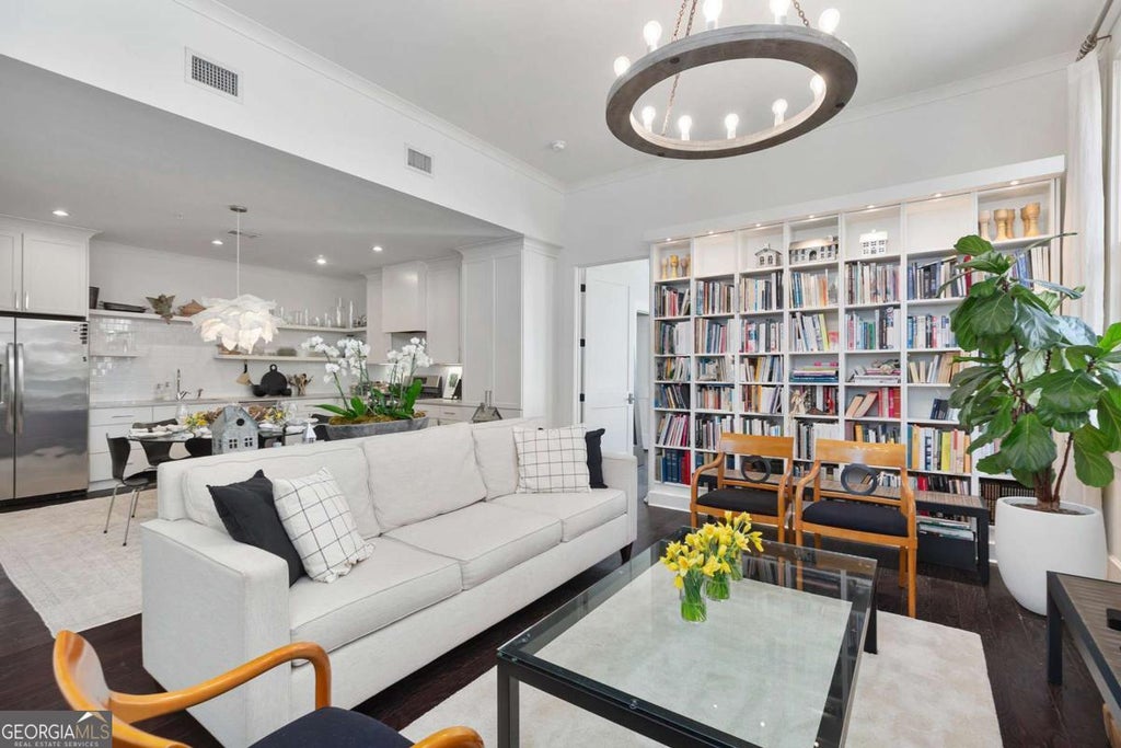 Experience loft-style living in the heart of Serenbe's Grange Hamlet with this stunning Textile Loft, Unit 204. Designed for all one-level living, this 2-bedroom, 2-bathroom home features soaring 11-foot ceilings and expansive windows that flood the space with natural light while offering serene views of Grange Green. The primary suite boasts custom built walk-in closets and elegant drapery, while the open living area is enhanced by built-in bookcases and thoughtful design details. This Loft is moments away from wellness amenities, including 20 miles of soft surfaced nature trails, as well as being neighbors with Serenbe Farms, where you can pick up fresh harvest each week.