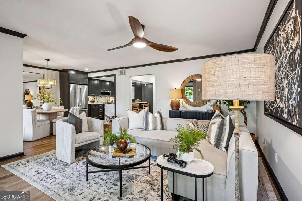Modern luxury meets comfort in this fully renovated end-unit condo by DrewGarkin Homes, LLC, a 5-star development team known for affordable luxury and modern elegance design. Ideally located in the sought-after East Cobb area, just minutes from Truist Park and seamless access to I-285/75, this home offers the best of Cobb County living! Tucked away as an end-unit, enjoy privacy and serene views of the pool and tennis court right from your window. Inside, this 3BR/2.5BA home features a fully open concept layout with natural flow from the living room to the kitchen and eat-in dining area. A custom design floor-to-ceiling fireplace wall serves as the focal point of the space-- equal parts cozy and captivating. The kitchen is outfitted with high-end KitchenAid appliances, sleek designer countertops, Delta touch faucet, beverage fridge, and new close cabinets throughout. Adjacent to the kitchen is a private patio and beautifully maintained green space with custom Precision Jet turf, perfect for entertaining or unwinding outdoors. Designed for modern lifestyles, this home includes: A dedicated study or office space, three spacious bedrooms each with custom closets, an oversized primary suite featuring a luxurious walk-in shower, dual quartz vanity with LED mirrors and high-end finishes throughout. Enjoy an upstairs laundry room conveniently located in the center of the three bedrooms for added convenience. Experience designer lighting and fixtures in all rooms, spacious hallways and natural light throughout the home. The property's complete renovation includes brand new insulation in the attic, a new electrical panel, new water heater and all new energy efficient windows installed to ensure energy efficiency and reliability for years to come. Schedule your private tour today and experience how DrewGarkin Homes continues to raise the standard in Atlanta living!