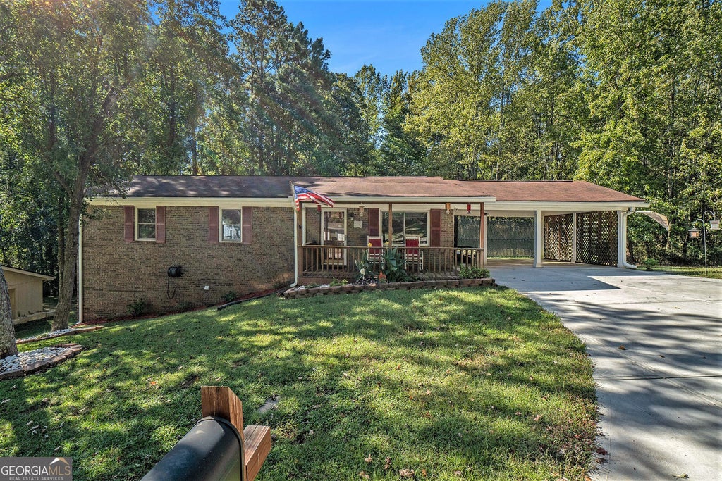 Welcome to your beautifully renovated brick ranch on a basement! This no-HOA home is packed with modern upgrades, timeless finishes, and sits in a convenient Douglasville location just minutes from I-20, shopping, and dining. The kitchen shines with granite countertops, new cabinets with extra storage, and brand-new appliances-refrigerator, microwave, dishwasher, and stove-all included. It flows into a bright eat-in breakfast area, perfect for casual meals. Inside, you'll find hardwood and LVP flooring throughout, updated windows, new fixtures, and storm doors that add comfort and efficiency. Both bathrooms have been fully updated with new vanities, tile, fixtures, and a double shower head in the master suite. Additional updates include a new front door, newly poured flat driveway, new walkways, reinforced massive deck with new steps to the yard, oversized front porch, new gutters, motion-sensor flood lights, and a recently serviced HVAC system. The home also comes with a termite bond, and the water heater is only 6 years old. The basement expands the living space with a bedroom, massive storage area, laundry room with shelving, and a convenient laundry chute that drops directly from upstairs to the basement. Outside, you'll also find a storage shed for added space. Don't miss out on this amazing opportunity-schedule your tour today!
