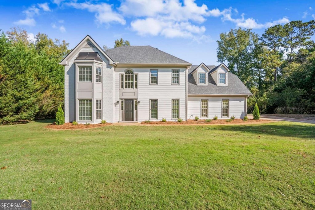 On a quiet cul-de-sac road, this beautiful two-story traditional home offers both privacy and convenience with a NEWER ROOF, fresh exterior paint in a desirable color palette, charming double bay window, and updated landscaping giving the property instant curb appeal. The long driveway with extended parking pad provides ample room for vehicles, RV/boat, or even recreational equipment, while the two-car side-facing garage adds privacy. BRAND-NEW DECK along with a spacious GARDEN area ready for you to harvest your own produce. Inside, the foyer sets a welcoming tone with brand-new flooring throughout the main level and crisp fresh paint, creating a BLANK SLATE for you to style the layout to meet your needs. The formal living and dining rooms flow seamlessly into the heart of the home with a cozy classic fireplace. Adjoining eat-in peninsula-style kitchen with a tile backsplash, breakfast bar, pantry, and quaint breakfast nook. Two access points lead to the expansive open deck and SCREENED-IN DECK space, perfect for fresh air year-round and enjoying effortless indoor/outdoor living. A second back staircase leads to a bonus room over the garage, featuring charming dormer window seats. The upstairs landing is flooded with natural light from the floor-to-ceiling palladium window, complementing the BRAND-NEW CARPET throughout the upper level. Enter the primary suite through French doors, where you'll find vaulted and tray ceilings, a double vanity with makeup counter, JETTED TUB, and a tiled frame-less shower. Three additional bedrooms, an additional full bathroom, and a convenient laundry room near all bedrooms, making laundry day a breeze. The backyard is lined with trees and seasonal foliage, giving the property a more private and secluded feel. With NO HOA, you'll have the freedom to customize an outdoor space you enjoy. Design your dream pool, add a fire pit, outdoor lighting and more. The options are endless! A SHED offers bonus storage for tools, equipment, or seasonal decor. Conveniently located near grocery, dining, healthcare, and reputable schools, while the location offers easy access to major highways for a smooth commute. Nearby Fowler Park, golf courses, winery with vineyard, breweries, as well as a short drive to Lake Lanier with its boat ramps and waterfront restaurants. Surrounded by recreation and year-round entertainment, this home feels fresh, updated, and ready for you to make it your own.