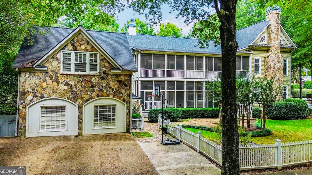 Executive Home at the Base of Kennesaw Mountain Nestled in the highly sought-after Ridenour Hedgewood community, this former model home beautifully captures the timeless charm and sophistication that Hedgewood Homes are known for. This spacious residence includes a carriage house, ideal for an in-law suite, college student, or rental opportunity (long-term rentals are permitted). The carriage home offers a full kitchen, washer/dryer connection, large living area, and a second-story bedroom with generous closet space and a full bath complete with a new HVAC system and water heater. The main home is rich with detail and custom finishes throughout. From coffered ceilings, detailed millwork, and plantation shutters to the high ceilings on both the main and terrace levels, every element adds to the home's sophistication and light-filled ambiance. The large chef's kitchen flows seamlessly into the great room, featuring a gas fireplace, custom built-ins, and a butler's pantry with a water line, perfect for a coffee or tea bar. The kitchen itself is a dream with a large island seating 6-8, high-end KitchenAid appliances, including a gas range with a convection oven/microwave, built-in hutch, and ample pantry space. Upstairs, the primary suite offers a true retreat with a gas fireplace, French doors leading to a private screened balcony, and a spa-inspired bath with dual vanities, a tiled shower, and a large walk-in closet. Two additional bedrooms share a Jack-and-Jill bath, and the second-floor laundry room includes built-in cabinetry for added convenience. The third-floor suite serves perfectly as a teen room, guest space, or private home office, complete with a full bath, and a large closet. The terrace level adds even more versatility, featuring a flex room (optional bedroom), large full bath, and a finished media room. There's also an unfinished walk-out space with washer/dryer hookups ideal for future expansion. Outdoor living is just as impressive, with a covered front porch, side screened balcony, and a flagstone patio complete with a capped gas line ready for an outdoor fire pit or grill. The fenced yard, new roof, new HVAC systems, and new water heater ensure peace of mind for years to come. Located in a park-like setting just minutes from Kennesaw Mountain National Park, I-75, Wellstar Kennestone Hospital, Kennesaw State University, Whole Foods, and top-rated dining and shopping this home truly offers luxury, comfort, and convenience in one of Kennesaw's most desirable neighborhoods.