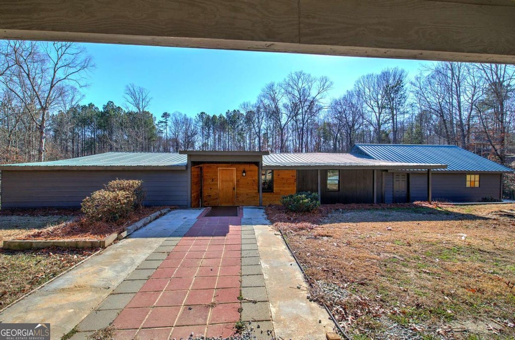 Rustic charm meets modern comfort on this beautifully renovated home tucked away on 1.21 private, wooded acres. From the vaulted ceilings with exposed beams to the custom wood paneling and striking bamboo floors with detailed inlays, every corner of this home offers something unique. The open-concept living space features an electric fireplace and flows into a stylish kitchen with shaker cabinets, butcher block countertops, stainless steel appliances, a farmhouse sink, and thoughtful updates throughout. The bathroom stands out with a tiled tub/shower accented by mosaic details and a custom vanity. Step outside to a freshly painted exterior, a spacious back deck, covered parking with both a carport and detached garage, plus an outbuilding for extra storage or workshop space. With a brand-new HVAC system and a peaceful setting just minutes from town, this one is truly move-in ready and full of character!