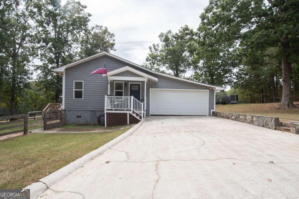 Welcome to quiet country living at its finest in desirable South Coweta! This beautifully renovated 3-bedroom, 2-bath ranch sits on almost 6 private acres and features a scenic 1-acre pond, mature trees, and plenty of space to spread out. Inside, the open-concept layout is perfect for modern living and entertaining with over 2400 square feet. The fully updated kitchen boasts granite countertops, newer cabinetry, a stylish island, and tiled flooring. The spacious living room includes a wood-burning stove for cozy evenings, and the adjacent dining area flows seamlessly for gatherings. A versatile den/bonus room offers space for a home office, playroom, or additional living area. Both bathrooms have been completely remodeled with tile floors, new vanities, and a tub/shower combo. The home also features real hardwood floors, a new roof, HVAC, and septic system offering peace of mind and long term value. Step out onto the back deck and enjoy grilling while overlooking the peaceful pond and surrounding landscape ready for your spring flowers and garden vision! You also have a fenced in yard for pets or kids! But wait, theres more!! You have a second home on the residence! Perfect for additional income or a mother in law suite! It features a 1-bedroom, 1-bath with a full kitchen! Conveniently located just a short drive to highly rated Moreland Elementary, downtown Newnan, and Ashley Park shopping and dining. This one of a kind property blends privacy, space, and modern updates don't miss it!
