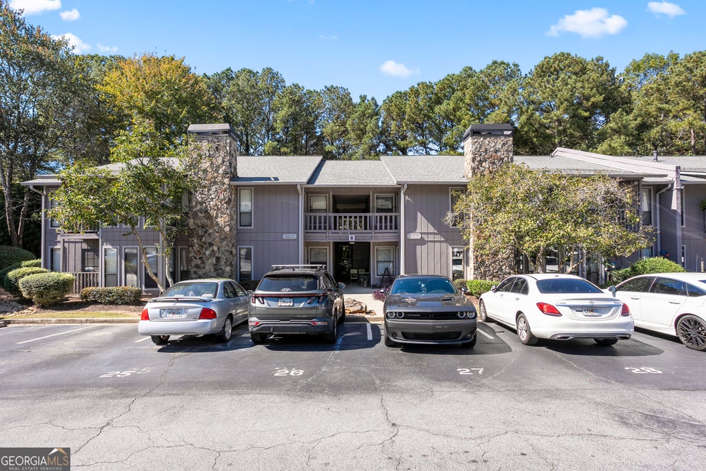 This is a 1 level condo with 2 BR and 2 Full Baths. This is a rear upstairs unit in a very quiet community. This unit has a really nice kitchen. A very spacious living room dining room combo with a sitting area and small balcony for exterior privacy. The Gated community is swim/tennis with a play area for children. This community has easy access to shopping, I-85, I-285, less than 20 mins from downtown Atl and less than 30 mins from the airport...