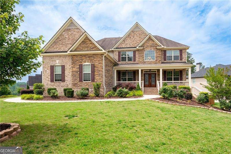Schedule an appointment to view this gorgeous executive home that boasts 5 bedrooms and an unfinished basement on a corner lot! Renovations include new carpet throughout, new interior paint, freshly painted kitchen cabinets, newly installed built-ins in the great room, refinished hardwoods, electric blinds, tinted family room windows, tinted back door, newly stained deck, fence and a firepit sitting area. The two-story foyer and gleaming, refinished hard woods will great your guests. The chef's kitchen is appointed with freshly painted cabinets, new pendants, stainless steel appliances to include a new refrigerator and dishwasher, granite countertops, tile backsplash, and an oversized island with seating. The kitchen opens to the sunny side eat in area with a new light fixture and the keeping room that features a vaulted ceiling, wood beams, and a brick fireplace and to the sunny eat in area. The open floor plan continues with the great room that boast, new hardwoods, a beautiful wall of windows, brick fireplace, and new built ins. The dining room features a new light fixture, trey ceiling, and wainscoting and is ready to host your dinner parties. The formal living room is perfect as a home office. Your guest will enjoy their time in their private ensuite that is appointed with new paint and new hardwoods. The second floor features the primary suite with a sitting area, trey ceiling, French doors, an oversized closet, granite counters, dual vanities, jetted tub, walk in shower, and a frosted window. There is another ensuite with a tiled shower and granite countertop. There are two additional bedrooms that share a Jack-n-Jill bathroom with a tiled shower and granite counters. Relax on your covered front porch and enjoy the sunset. The deck overlooks the private, level backyard. There is plenty of room for a pool or playset. You will enjoy your evenings by the firepit. There is a double gate on one side of the fence and single gate on other side. The basement is ready for your design and special touch. The three car garages are side entry and have extra height doors. The neighborhood is a conservation area with ample greenspace, featuring a fishing lake with dock, walking trails, pocket parks, Junior Olympic pool, kiddie pool with 4 mushroom waterfalls, clubhouse, playground, 6 lit tennis courts, basketball court, pickleball complex, and a vibrant social community. Enjoy the closeness to the North Georgia Mountains, Lake Lanier, and the North Georgia Premium Outlet Mall, adding to the unbeatable lifestyle this home offers.