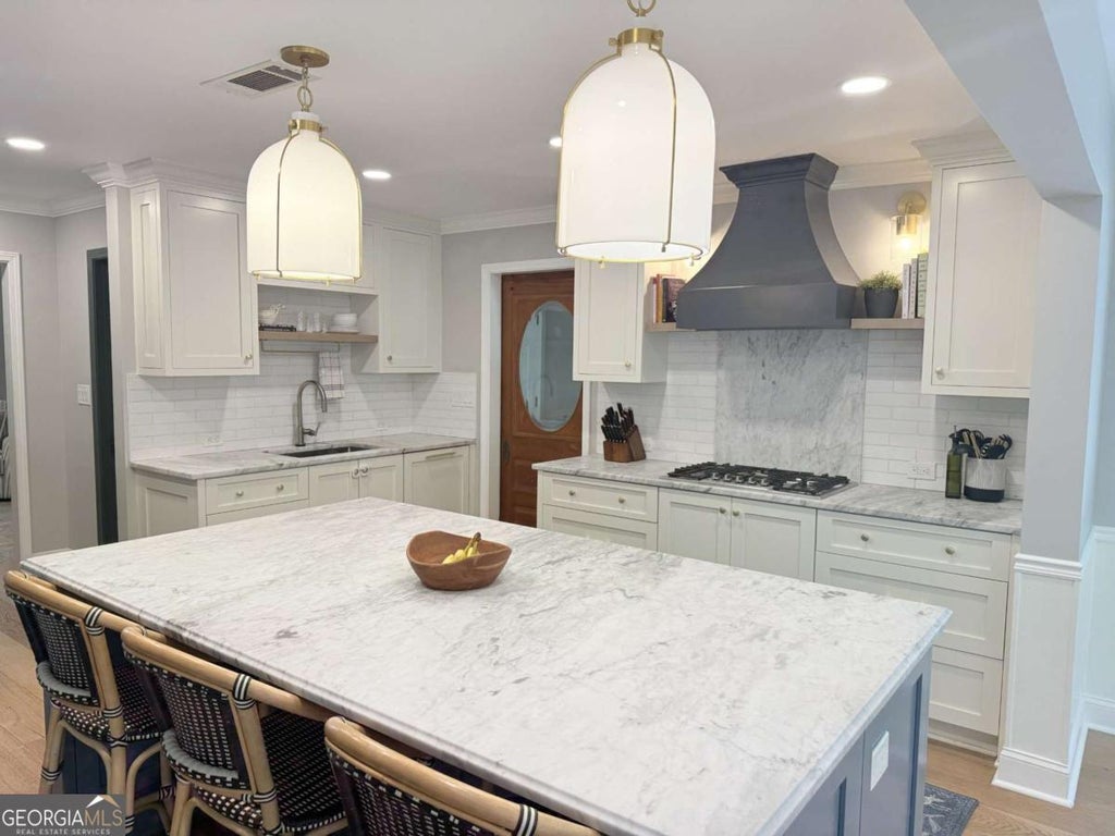 Welcome home to this exquisitely renovated Victorian-style in one of East Cobb's most sought-after neighborhoods-Chimney Springs, served by the top-rated Pope High School district. From its full wrap-around front porch to its open-concept interior and impressive backyard, this home perfectly balances character and comfort. Step inside to discover about $250K in thoughtful upgrades--with every detail expertly designed by an HGTV- and Southern Living-featured designer. The generous front living room offers versatile use-perfect for a private home office or a spacious main-level playroom. A second front living area just off the kitchen provides a welcoming space for a lounge or sitting room. Designed for entertaining, the open-concept main level features a stunning gourmet kitchen seamlessly connected to the dining area and great room, creating the perfect flow for everyday living and gatherings. The designer kitchen is a true showpiece-featuring custom cabinetry with smart storage, honed Italian marble countertops, a Bosch 5-burner gas cooktop with Tradewinds vented hood, Bosch paneled dishwasher, LG refrigerator with whiskey-ball ice, GE wall ovens, built-in coffee station, and a walk-in pantry with custom shelving. Beautiful commercial-grade engineered hardwood floors on the main level, designer lighting, brand new carpeting upstairs, and porcelain brick herringbone tile in the mudroom and laundry enhance the home's elegant style. The primary suite offers a spa-like retreat with marble mosaic floors, dual shower heads, a deep soaking free-standing tub, leathered black granite countertops, and custom vanities with interior outlets. The newly renovated secondary bath shines with quartz countertops, soft-close cabinetry, and solid brass fixtures. You'll find a fantastic bonus room off the owner's suite, ideal for a home office or media room, with its own private access via rear stairs. Three generously sized secondary bedrooms offer plenty of comfort and flexibility. This backyard was made for barbeques, entertaining, and playing! Nestled on 1/2 acre and adjacent to 2 acres of HOA property, you'll enjoy complete privacy in the expansive fenced backyard with two patio areas. Relish in all that Chimney Springs has to offer-a scenic lake with fishing, jogging and biking trails, basketball court, eight lighted tennis and pickleball courts, three mini parks, a new playground, and a lovely clubhouse. This is more than a home-it's a lifestyle of comfort, quality, and community in the heart of East Cobb. (Please note correct street is "Fox Hound Chase" - Zillow is showing "Fox Hound Parkway")