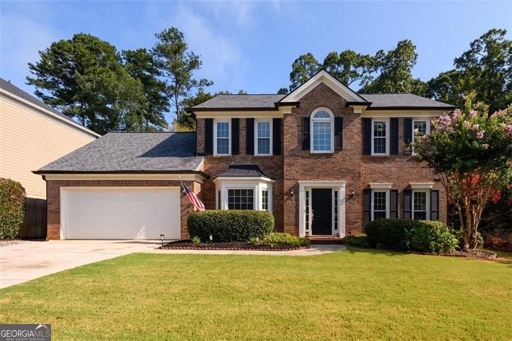 This stunning home is a buyer's win and is poised to attract immediate attention. The property is an exceptional value in Johns Creek and within the desirable Silver Ridge neighborhood. The design embodies the perfect blend of classic and modern charm. This meticulously maintained two-story home features a brick facade that exudes warmth and sophistication. Upon arrival, you are greeted by a beautifully landscaped front yard, meticulously manicured grass, and vibrant flora that create a welcoming atmosphere. The inviting entrance leads you into a spacious two-story foyer, where you will immediately appreciate the thoughtful design and flow of the layout. The home boasts an ample amount of windows, allowing natural light to flood the living spaces, making each room feel bright and airy. You will find a cozy and inviting family room, perfect for gatherings or quiet evenings, seamlessly connecting to the chef's delight kitchen, featuring modern appliances and ample counter space for meal preparation, striking the perfect balance between functionality and style. Enjoy family meals in the charming eat-in kitchen, where a picturesque bay window frames tranquil views of your private, serene backyard. The main level flex room features beautiful french double doors and is perfect for an at-home office, overflow guest room or children's play room/extra den or reading room. Step outside to an enchanting private backyard that is designed for relaxation and entertainment. A covered patio invites you to grill, dine alfresco or simply unwind after a long day. The fenced yard offers decorative stone steps leading to a versatile terraced yard-ideal for cozy evenings around a fire pit, cultivating your favorite vegetables or creating a play area, With a blend of indoor comforts and outdoor tranquility, this residence offers an idyllic lifestyle for those seeking both relaxation and entertainment. Don't miss out on the chance to own this piece of paradise that combines comfort, style, and exceptional outdoor living in one fabulous property.