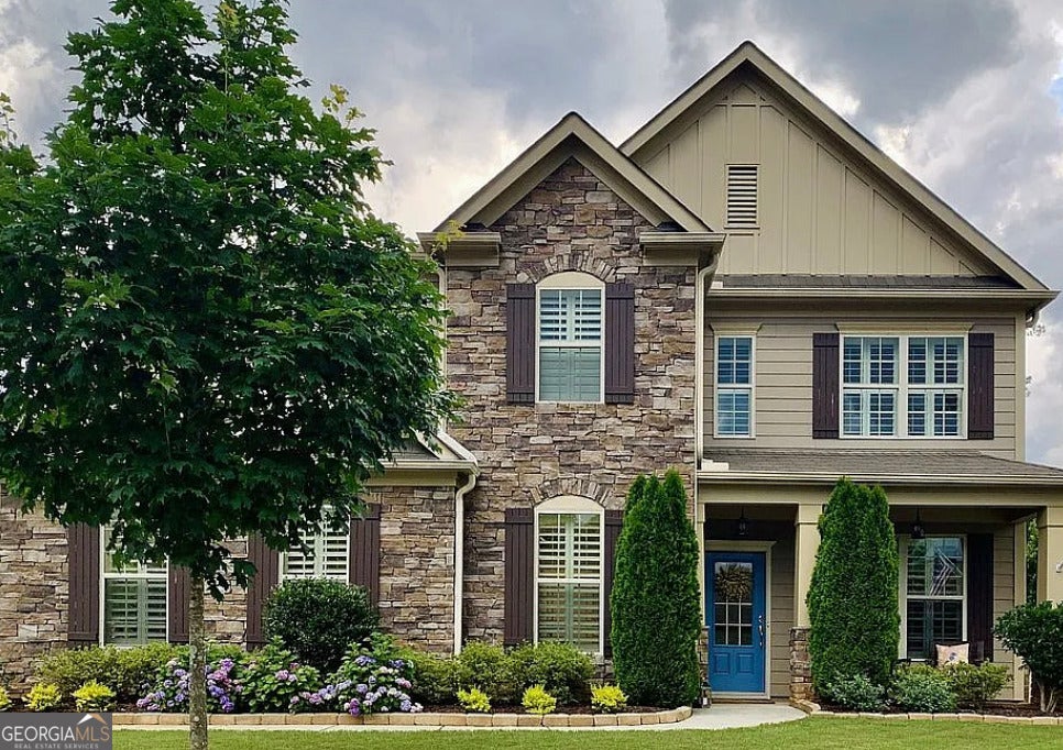 Welcome Home! This craftsman beauty in the Hickory Plantation community is in award-winning Harrison High School district! Spacious home is perfect for a large family with 5 bedrooms and 4 bathrooms and an open floorplan with hardwood flooring throughout. Impressive 2-story foyer leads you to a large family room with a cozy gas fireplace and an abundance of large windows adorned with plantation shutters, providing uplifting natural light throughout. Highlights of your chef's kitchen include all stainless-steel appliances, a gas cooktop, granite countertops, white cabinetry, built-in wine rack, plenty of cabinets for storage, and a view of the family room and backyard. Oversized separate formal dining room with coffered ceilings is perfect for entertaining friends and family. Main floor guest bedroom and full bath add value. Upstairs you will find an oversized primary bedroom with a sitting room, double vanities, a soaking tub, separate shower, and large walk-in closet. Upstairs there's 3 more large bedrooms and 2 more full bathrooms. The laundry room is conveniently located on the upper level too. The fenced level backyard is a true sanctuary with professional landscaping. 3-car side entry garage. Close to shopping, dining, downtown Acworth, and Lake Allatoona. Amazing schools!! 2022 kitchen upgrades include: Custom painted kitchen cabinets with all upgraded hardware, added subway tile kitchen backsplash, custom range hood over stove with exhaust to the outside, installed deep stainless steel work station sink with new bridge faucet, custom built kitchen island with wine rack and microwave drawer, and glass front cabinets installed butler's pantry. Additional upgrades include: Entire exterior including shutters and garage door and all interior walls newly painted (2025), new roof with architectural shingles (2023), custom indirect soft white led above-cabinet and under-cabinet lighting in kitchen (2025), upgraded kitchen and downstairs bath quartz countertops (2022), all light fixtures upgraded including exterior fixtures and added LED integrated recessed lights in kitchen, family room, and laundry room with dimmer switches, custom wooden 4" plantation shutters on every window including upstairs, back of home, and garage windows (2020), extended driveway and back concrete patio (2022), installed recessed medicine cabinet mirrors in downstairs bath and Master Bath (2025), new Kohler deep soaker garden tub (2025) Master Bath, upgraded sink faucet in downstairs bathroom (2025), custom built laundry room cabinets (2025), custom Master closet for Her with wood shelving, shoe tower, and chest of drawers (2020), custom arched doorway into downstairs hallway (2025), custom built-in shelving with cabinets in family room (prior to our purchase) with newly built shaker-style cabinet fronts and new hardware, soft close euro hinges, and custom soft white led lighting, new ceiling fan/light combo in 2 upstairs bedrooms(completed in 2024), added landscaping in back (serviceberry tree, Nandina bushes, and lavender), added additional high lumen work lights in garage, added heavy duty breaker and multi-plug outlet in garage for power tools, added specialty breaker and outlet for garage refrigerator, installed custom shelving and spice shelves in kitchen pantry, upgraded all entry door handles/knobs.