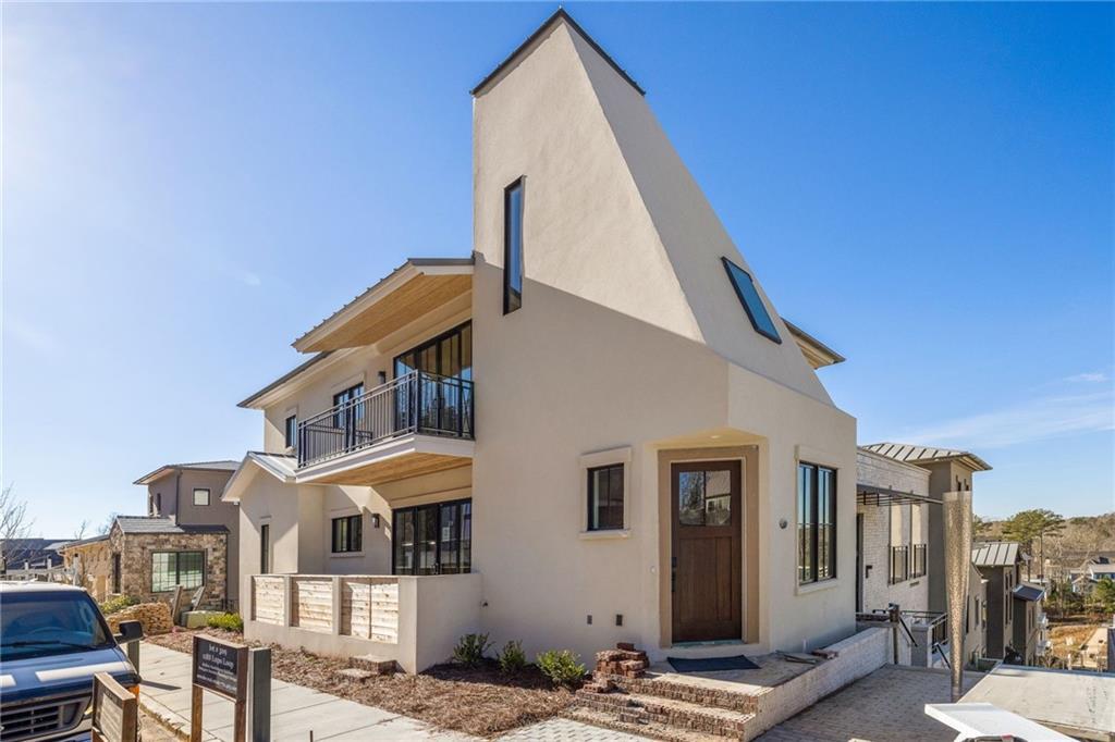Nestled on the scenic Lupo Loop hillside in Serenbe, this modern home combines open-concept living with breathtaking views. The main level welcomes you into a spacious living and dining area, seamlessly connected for effortless entertaining. Large windows flood the space with natural light. Adjacent to the main living space, a cozy guest bedroom and full bathroom offer convenience and privacy for visitors. At the front of the home, a charming courtyard creates a perfect spot to enjoy quiet mornings or intimate gatherings. Moving upstairs, the entire upper floor is dedicated to an oversized primary bedroom + bathroom. This luxurious retreat features a private balcony that overlooks Lupo Loop, providing a space to relax and take in the landscape.