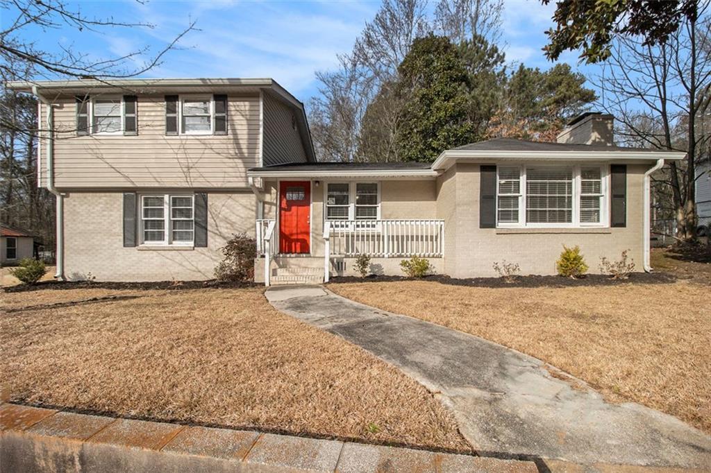 This spacious 5-bedroom, 2-bath split-story home offers a welcoming brick and hardy exterior with a covered side porch. The property includes a 2-car detached carport and a laundry room located on the lower split-level for added convenience. Inside, the kitchen features granite countertops and stainless steel appliances, all in good working condition. Laminate wood flooring is found in the main areas, with carpeting throughout the bedrooms, except for the kitchen. A perfect blend of comfort and functionality in a charming home!