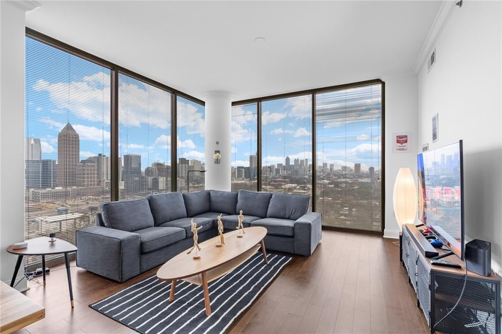 FULLY UPGRADE AND FLOOR TO CEILING WINDOWS IN EVERY ROOM! Discover life in the city at its finest with this stunning 2-bedroom, 2.5-bathroom condo located on the 21st floor of the prestigious high-rise, The Atlantic, located in Atlantic Station. Situated on the southeast corner, this residence offers breathtaking panoramic views encompassing Downtown, Midtown, and Buckhead. FULLY UPGRADE AND FLOOR TO CEILING WINDOWS IN EVERY ROOM TOO! Upon entering, you are greeted by an expansive living and dining area bathed in natural light, perfect for both relaxing and entertaining. The primary bedroom boasts large windows that frame the dynamic cityscape, creating a serene retreat enhanced by an en-suite bathroom complete with a luxurious soaking tub, separate shower, duel sinks, and an expansive walk-in closet. The second bedroom also offers generous space and its own private bath, ensuring comfort and privacy for residents and guests. Residents of this exclusive building enjoy a host of amenities, including 24-hour concierge service, a fitness center, a beautiful swimming pool overlooking the Atlanta skyline, a gorgeous clubroom, and secure parking. Perfectly positioned near Atlanta's finest dining, shopping, and entertainment venues, this condominium presents an unparalleled opportunity to embrace the cosmopolitan lifestyle of Atlanta. Don't miss your chance to own a piece of Atlanta's skyline. Schedule your private tour today and experience luxury living at its best.