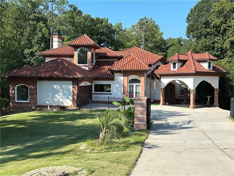 Luxurious Custom-Built Estate with Exquisite Upgrades. Discover unparalleled luxury living at 725 Links View Dr, a meticulously crafted custom-built home in the sought-after community of Sugar Hill, Georgia. This magnificent residence, thoughtfully constructed by a seasoned builder with a passion for quality as their forever home, boasts an array of premium features and upscale finishes, promising a lifestyle of opulence and comfort. Adorned with a charming stucco exterior and crowned by a terracotta roof, this home exudes Mediterranean charm and timeless elegance from the moment you arrive. Step inside to be greeted by a grand Versace granite foyer, setting a tone of sophistication and luxury that continues throughout the home. The main level exudes sophistication, featuring granite floors in the formal living room adorned by a cathedral ceiling. An office with hardwood floors provides a serene workspace, ideal for remote work or personal projects. Convenience is paramount with a half bathroom featuring granite floors and walls. Indulge in the lavish comforts of the primary suite on the main level, offering a dome ceiling, hardwood floors and an ensuite bathroom adorned with granite/marble floors. Pamper yourself in the luxurious amenities, including a whirlpool-style tub, walk-in shower, bidet, and gold-accented double vanities. Crystal door knobs add a touch of glamour to the space, ensuring an indulgent experience at every turn. Entertain in style in the formal dining room, adorned with sleek granite floors, creating an ambiance of sophistication and refinement. The gourmet kitchen is a culinary enthusiast's dream, outfitted with top-of-the-line appliances, including a Gaggenau cooktop and Miele ventilation hood, enhanced by granite countertops, offering both functionality and beauty. The kitchen seamlessly flows into the family room, creating a harmonious space for everyday living and gatherings. Upstairs, two generously sized bedrooms boast hardwood floors and share a full bath with granite floors and walls, providing comfortable accommodations for family members or guests. The finished cedar wood basement is an entertainer's paradise, boasting a full Tiki bar, crown molding and luxurious granite floors. A bedroom with a sliding door leading to the inviting in-ground pool area offers a serene retreat for guests, while a full bath adds convenience. Step outside to the pool area, where a built-in gas grill awaits, perfect for outdoor gatherings. A half bathroom with granite floors and accents ensures ultimate convenience while enjoying the poolside ambiance. Enhancing the outdoor experience is a charming backyard bridge that spans over a tranquil fountain pond, adding a touch of serenity to the landscaped grounds. For added versatility, a separate two-story outbuilding with a garage presents an opportunity for conversion into an accessible dwelling unit, ideal for guests or extended family members. Additional features of this exceptional property include a private electric gate and an irrigation system, ensuring convenience and security. Experience the epitome of luxury living at 725 Links View Dr, where every detail has been carefully considered to create a residence of unparalleled elegance and sophistication. Don't miss your chance to make this extraordinary home your own. Schedule your private showing today.