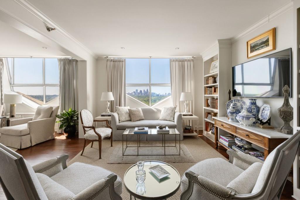 Seller is including 6 months paid HOA dues upfront at closing! There's truly nothing like this top-floor, corner penthouse condo-it's one of a kind in the building and hasn't hit the market since 2005! Originally a 3-bedroom, this unit was thoughtfully reimagined as a spacious 2-bedroom to create a more open living area and maximize the breathtaking views. From the moment you step into this extensively renovated home, you'll see that every detail has been carefully considered. The entire space was remodeled down to the new drywall and has been reconfigured to make every square foot enjoyable. The current owners added engineered hardwood flooring throughout, repainted every wall and ceiling, upgraded the appliances, added Carrara marble backsplash and American-honed granite countertops in both the kitchen and bathrooms! Additional upgrades include recessed lighting with dimmers throughout, luxurious Italian marble floors and walls in both bathrooms, Carrara hexagon marble tile in the primary shower and elegant wainscoting in the kitchen and primary bath. Custom shelving was also added in the living room, den and in the newly created office space. This is one of the few homes in the building with central HVAC plus four existing wall-mounted units-ensuring year-round comfort. To top it off, the condo includes two conveniently located parking spaces side-by-side. Situated at the end of the hallway, this penthouse offers exceptional privacy with no neighbors on three sides-and no one above you! The building itself has also seen major upgrades, including a renovated pool and sundeck, updated hallways, and fast, whisper-quiet elevators. HOA dues cover water, wastewater, trash, concierge services and internet in the common areas. Plus, the recently installed Luxor One system offers secure, customized package locker delivery for each residence. For added ease, gas and electric are billed at a flat monthly rate-so you can live in luxury without worrying about fluctuating utility bills. This ultra-rare penthouse won't last long!