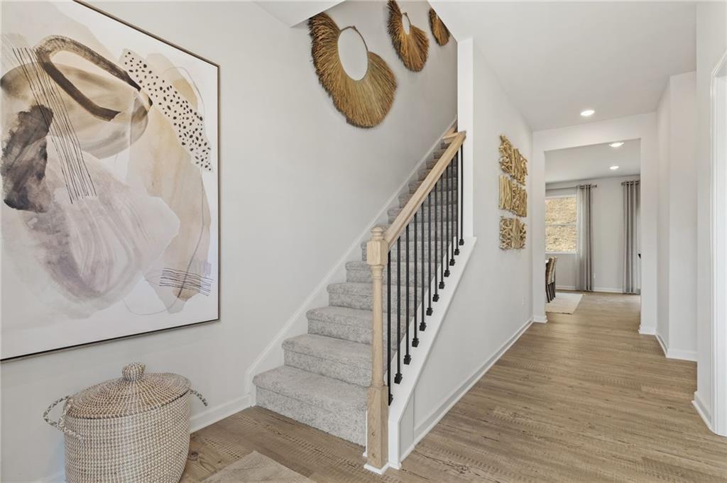 Welcome to the Jordan at Ashley Falls by Century Communities, a beautifully designed home with a modern open concept. Ashley Falls is located minutes from historic downtown Douglasville, a nationally designated Main Street City, listed on the National Register of Historic Places, featuring locally owned restaurants and shops. Newly designed Jordan floorplan with modern open concept featuring large kitchen island overlooking great room with floor to ceiling fireplace. Our kitchen includes painted white cabinets, granite countertops, and full tile backsplash. The main level, all bathrooms, and laundry include luxury vinyl plank flooring sure to wow. Large primary suite includes walk in closet and private bathroom with large walk-in shower and linen closet. Oversized laundry room on the second floor with convenient access to bedrooms. 1 guest bedrooms on the main and second floor has another 3 guest bedrooms and the primary suite.