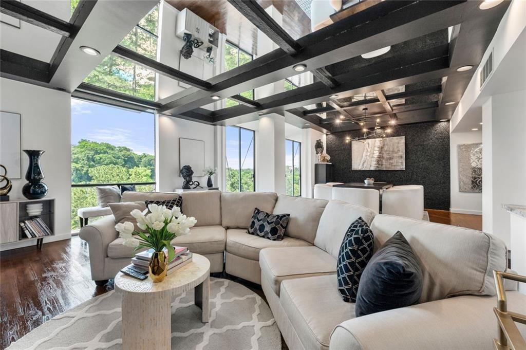 This home showcases a wall of nearly 40 feet of unobstructed, panoramic city views, flooding the space with natural light and offering an ever-changing skyline backdrop. The open floor plan is perfect for entertaining or relaxing in style, with a layout that’s as functional as it is stunning.