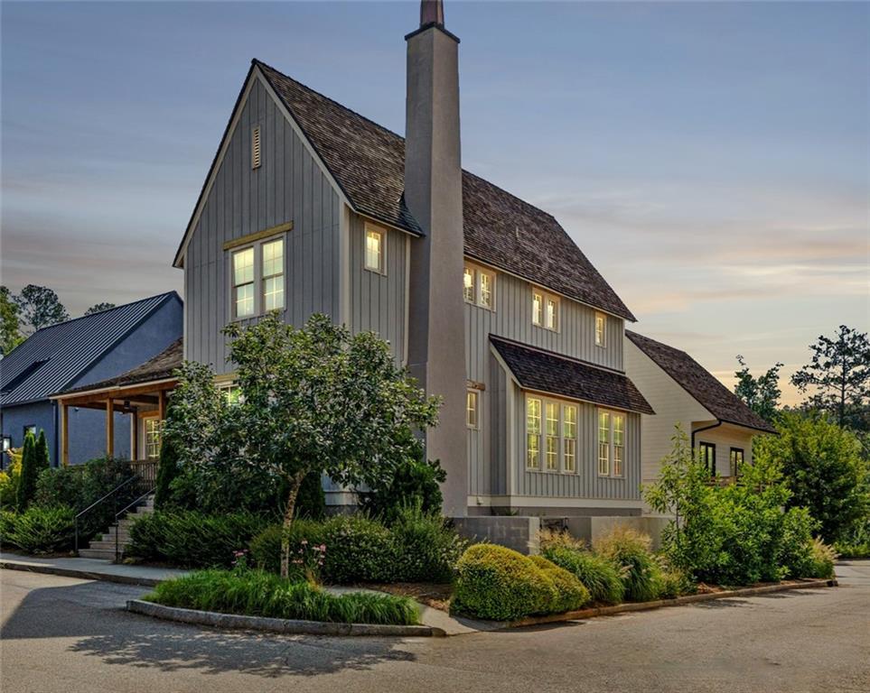 Discover this custom-built home on a corner lot in Serenbe's desirable Mado hamlet. The kitchen features a marble counter, designer tile backsplash, built-in cabinets, abundant natural light, a kitchen office, and a stained wooden island with a marble countertop. The main-level primary suite includes a spa-like bathroom with a separate soaking tub and spacious walk-in shower. The main floor also offers a large family room with a fireplace, an open dining area, a generous kitchen, and a charming guest powder room. Find two additional bedrooms, two bathrooms, and a light-filled hallway upstairs. The upgraded finished terrace level includes a media room, recreation space, a bedroom, and a full bathroom. Outside, enjoy a heated saltwater lap pool with serene waterfalls for ultimate relaxation.
