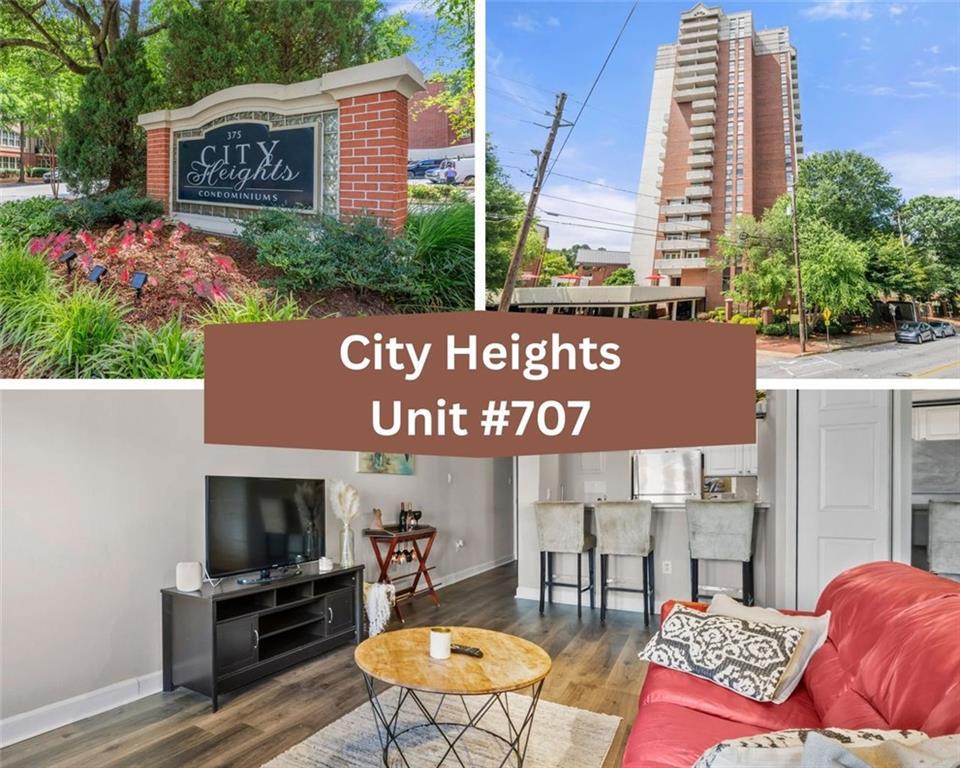 Welcome to this beautifully updated 2-bedroom, 1-bathroom condo in the desirable City Heights community. Unit #707 features sleek laminate flooring throughout and a bright, open layout. The stylish open-concept kitchen flows seamlessly into the living and dining areas; and the rear porch off the living room offers a peaceful spot to relax with lovely city skyline views - perfect for morning coffee or evening unwinding. Enjoy a full suite of resort-style amenities, including an Olympic sized pool, fitness center, community room, 24/7 concierge service, dog park, walking trail, and secure gated access. The unit also includes one covered parking space for added convenience. Located just minutes from Midtown, Ponce City Market, the BeltLine, and Downtown, this home offers unbeatable access to Atlanta’s best dining, shopping, outdoor recreation, and major highways. Welcome home!